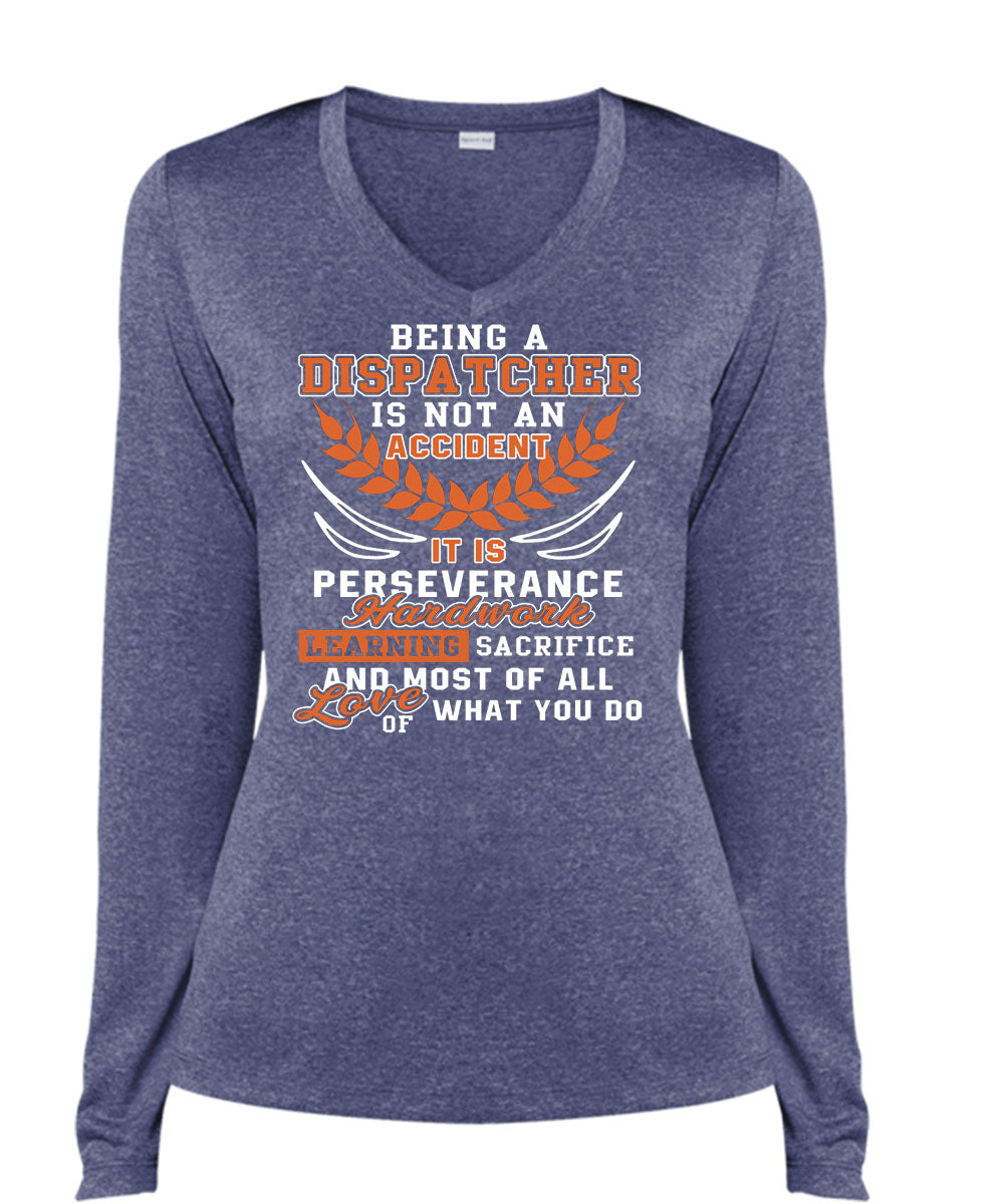 Being A Dispatcher Is Not An Accident T Shirt, It Is Perseverance Hard Work T Shirt, Cool Shirt (Ladies LS Heather V-Neck)