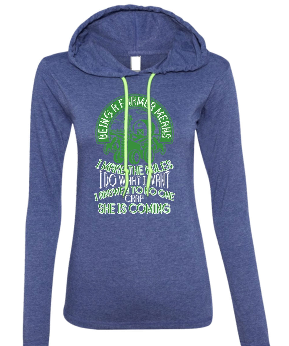 Being A Farmer Means T Shirt, I Answer To No One Crap T Shirt (Anvil Ladies Ringspun Hooded)