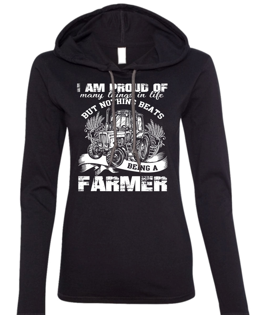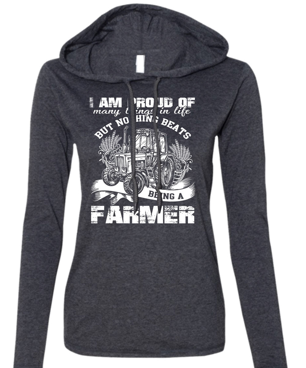 Being A Farmer T Shirt, I Am Proud Of Many Things In Life T Shirt (Anvil Ladies Ringspun Hooded)