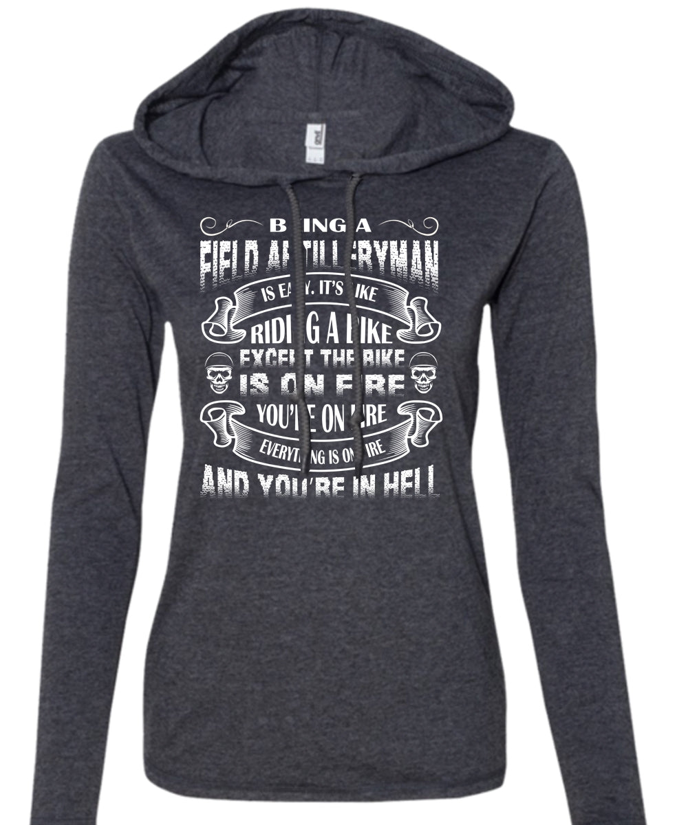 Being A Field Artilleryman Is Easy T Shirt, Diding A Bike T Shirt (Anvil Ladies Ringspun Hooded)