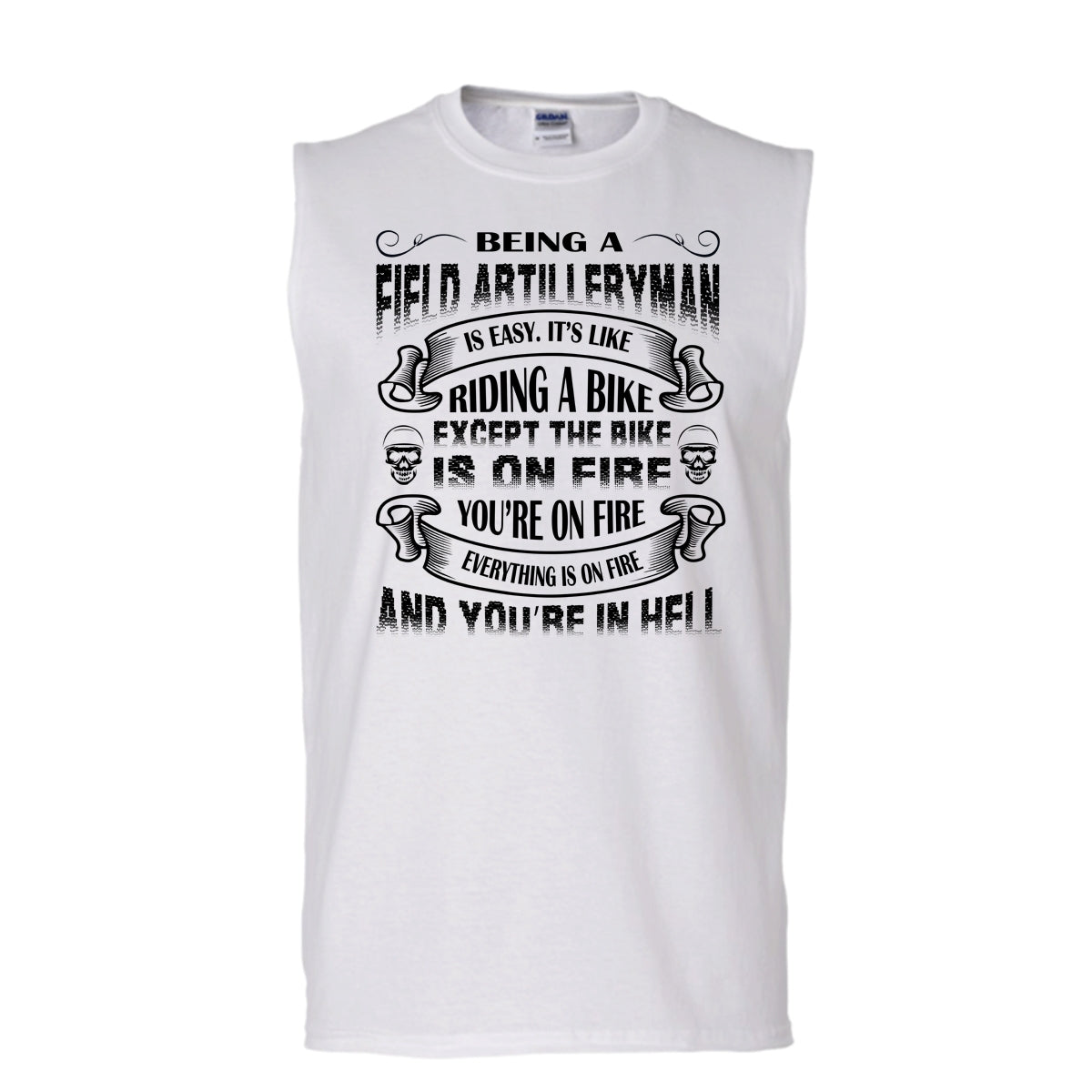 Being A Field Artilleryman Shirt, Except The Bike Is On Fire Shirt (Men's Cotton Sleeveless)