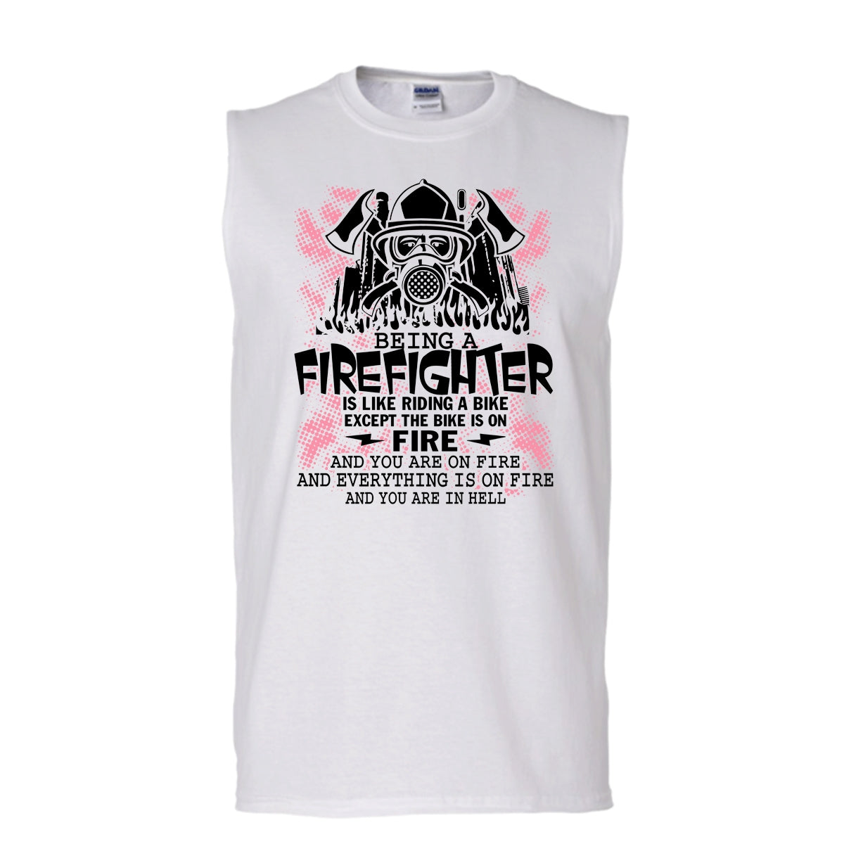 Being A Firefighter Is Like Riding A Bike T Shirt, I Am A Firefighter T Shirt, Awesome t-shirts (Men's Cotton Sleeveless)