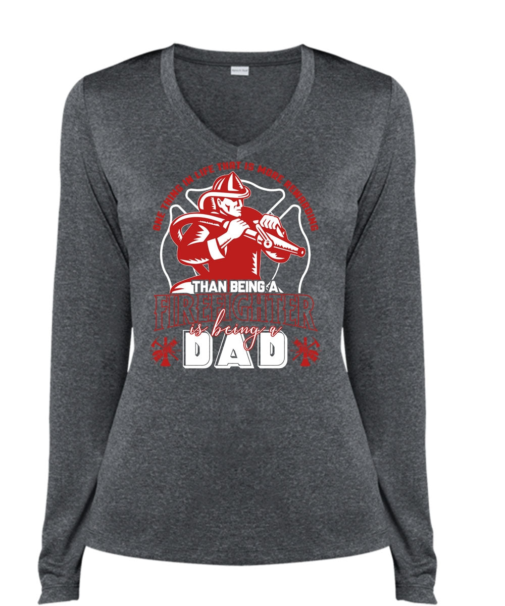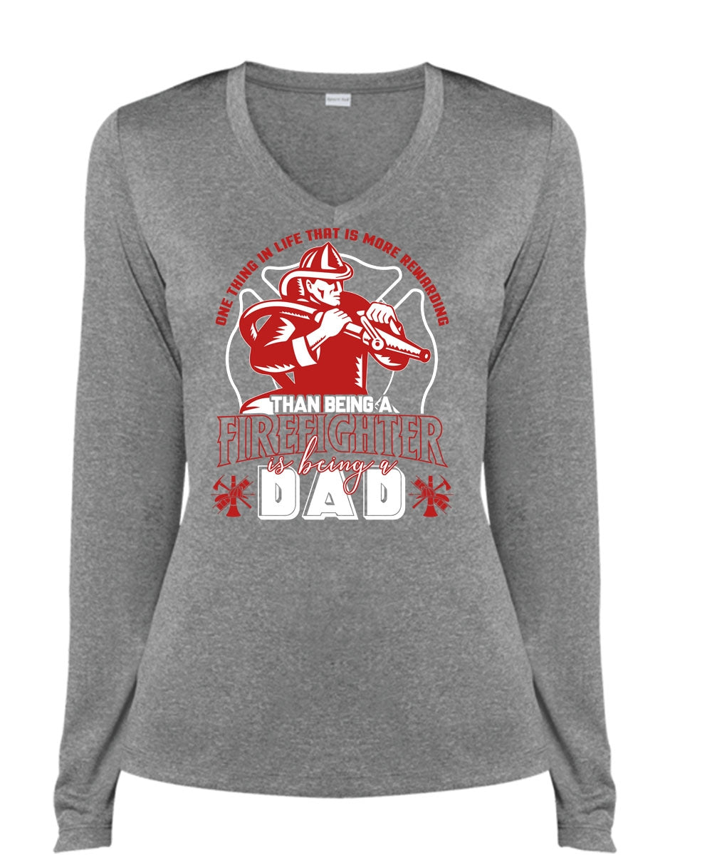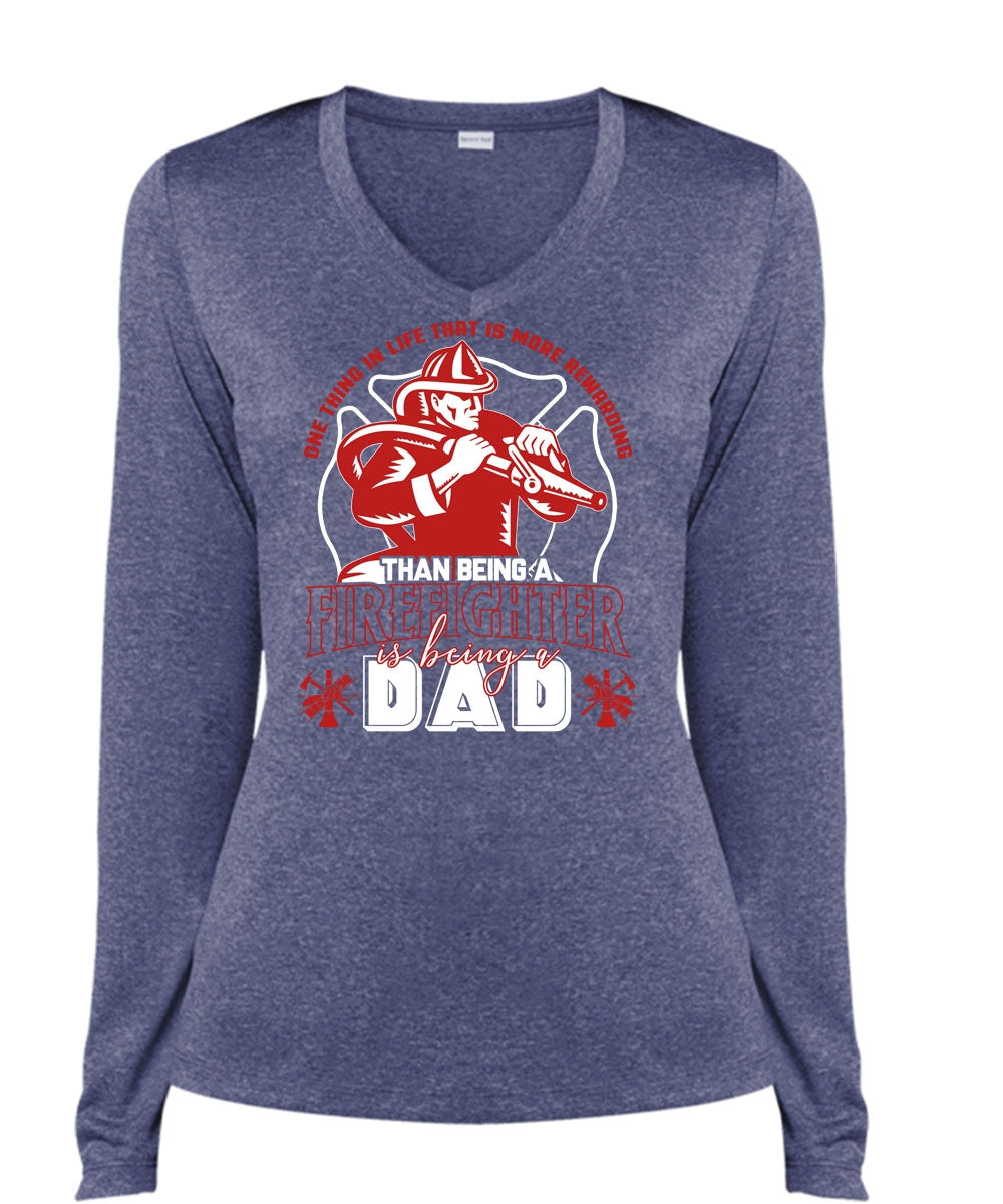 Being A Firefighter T Shirt, Being A Dad T Shirt, Cool Shirt (Ladies LS Heather V-Neck)