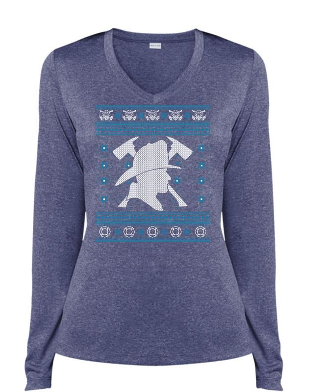 Being A Firefighter T Shirt, Calls Me A Firefighter T Shirt, Cool Shirt (Ladies LS Heather V-Neck)