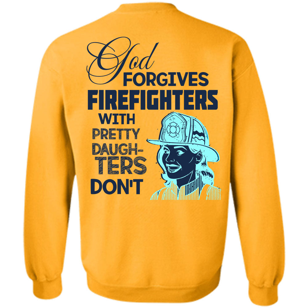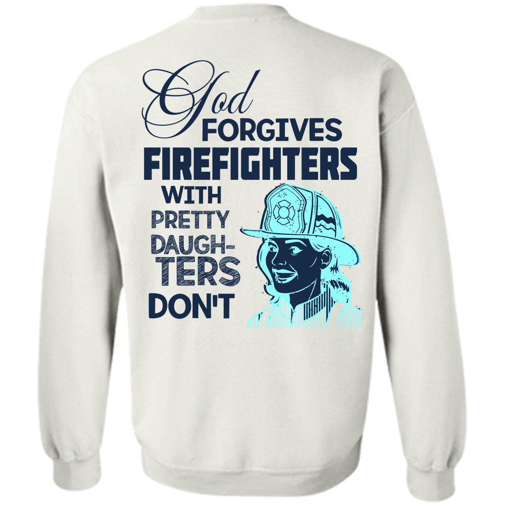 Being A Firefighter T Shirt, God Forgives Firefighters Sweatshirt