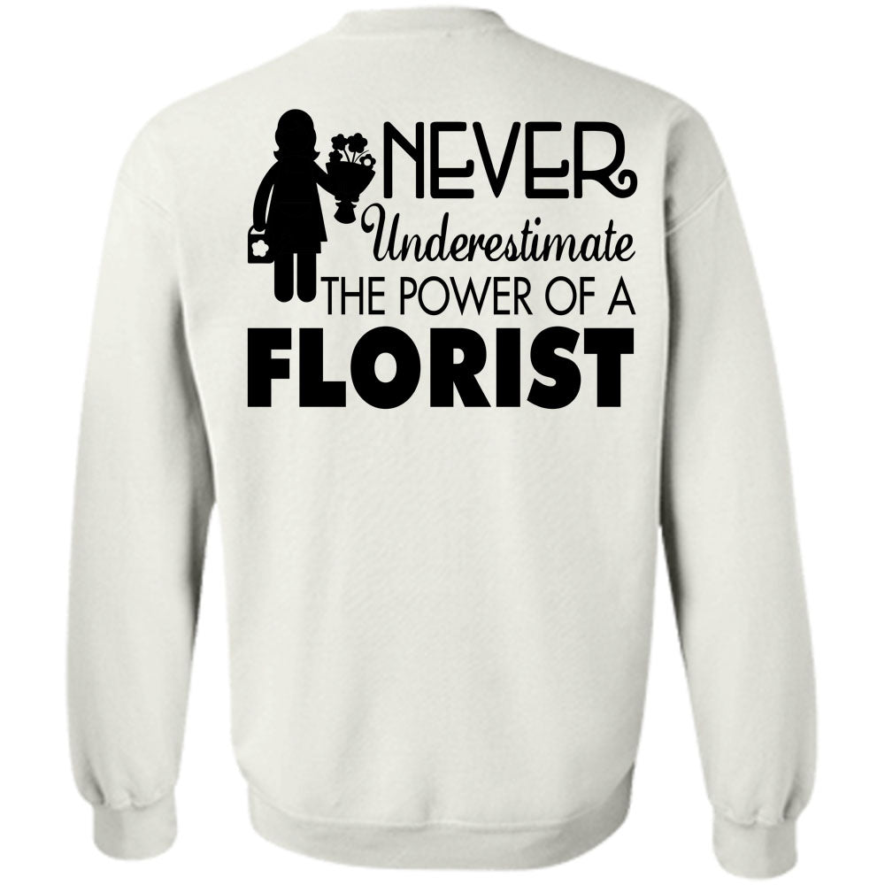 Being A Florist T Shirt, Never Underestimate The Power Of A Florist Sweatshirt