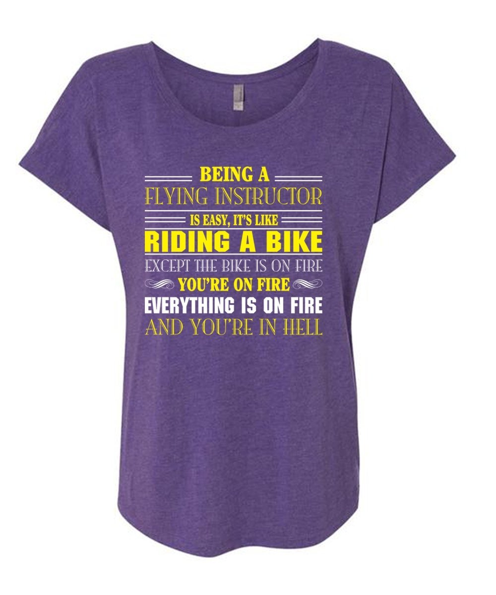 Being A Flying Instructor Is Easy T Shirt, It's Like Riding A Bike Except The Bike Is On Fire T Shirt (Ladies' Triblend Dolman Sleeve)