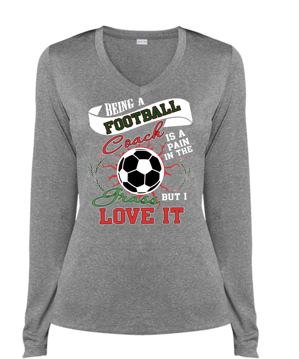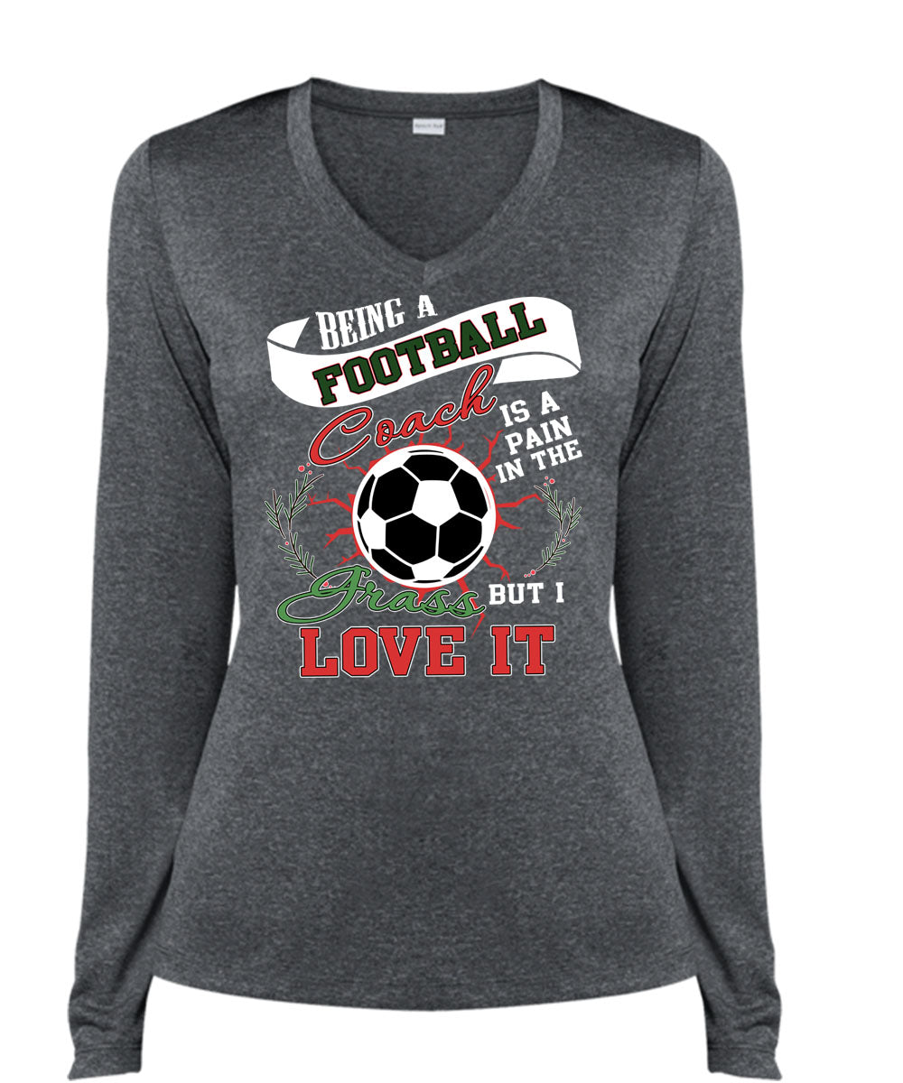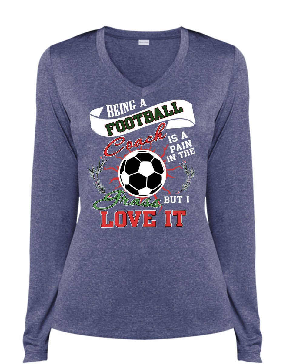 Being A Football Coach T Shirt, I Grass Live It T Shirt, Cool Shirt (Ladies LS Heather V-Neck)