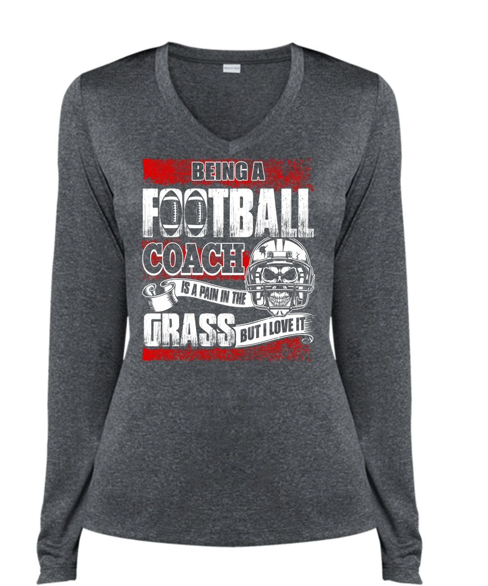 Being A Football Coach T Shirt, I Love It T Shirt, Cool Shirt (Ladies LS Heather V-Neck)