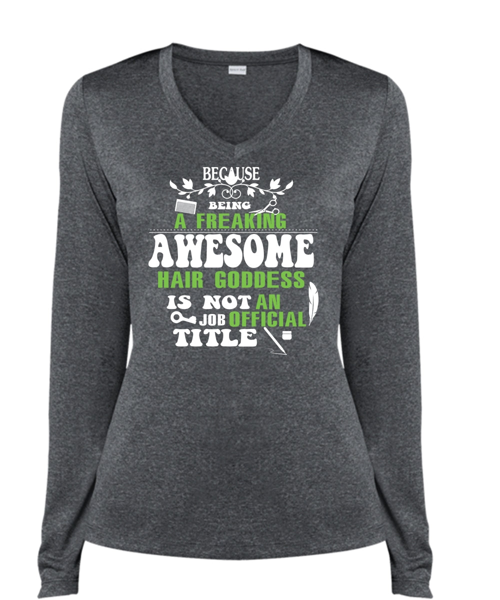 Being A Freaking T Shirt, Awesome Hair Goddess Is Not An Job Official Title T Shirt (Ladies LS Heather V-Neck)