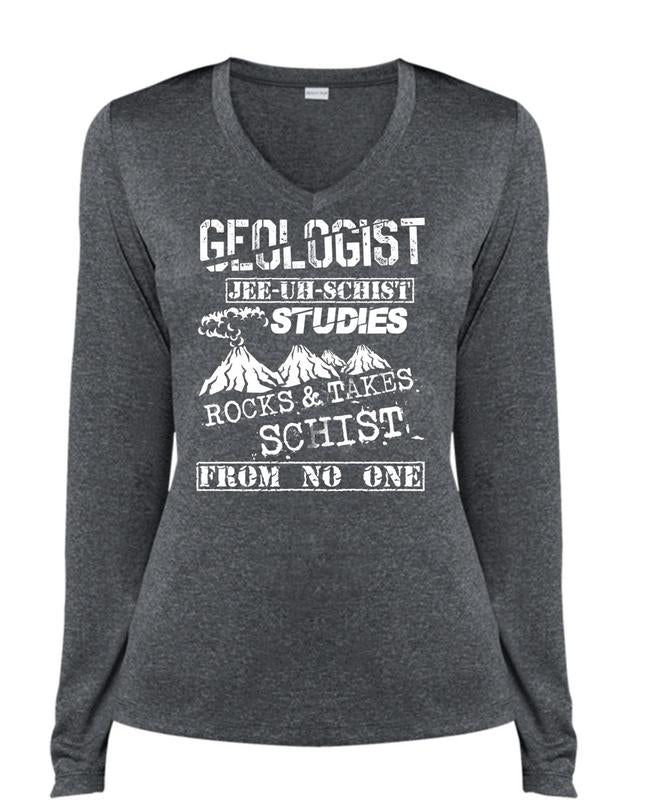 Being A Geologist T Shirt, Rocks And Takes Schist T Shirt, Cool Shirt (Ladies LS Heather V-Neck)