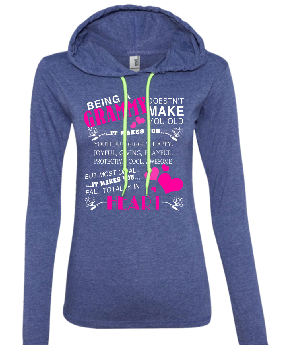 Being A Grammy T Shirt, It Makes You Fall Totally In Heart T Shirt (Anvil Ladies Ringspun Hooded)