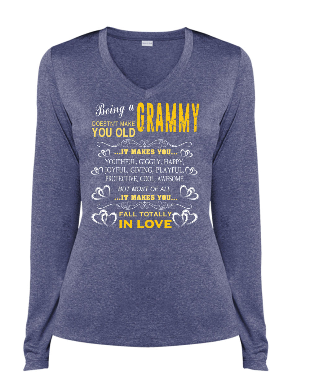 Being A Grammy T Shirt, It Makes You Youthful T Shirt, Cool Shirt (Ladies LS Heather V-Neck)
