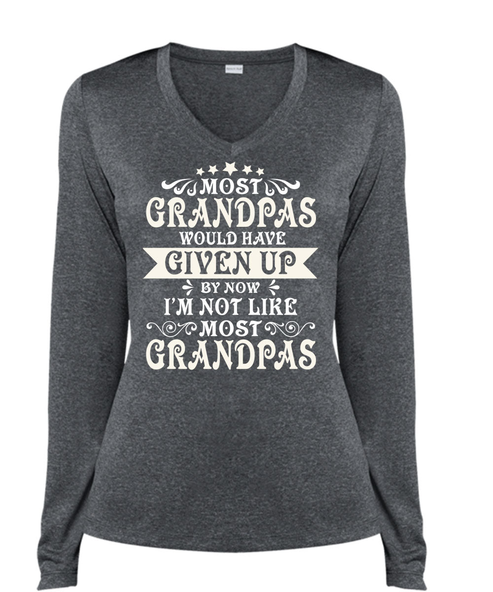 Being A Grandpas T Shirt, I'm Not Like Most Grandpas T Shirt, Cool Shirt (Ladies LS Heather V-Neck)