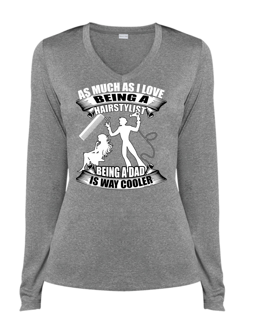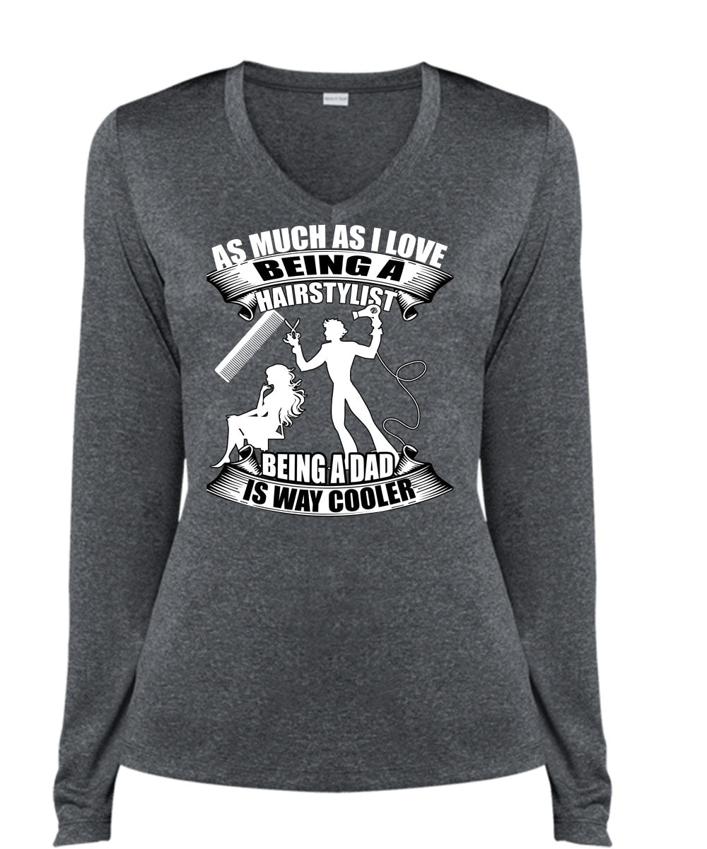 Being A Hair Stylist T Shirt, Being A Dad T Shirt, Cool Shirt (Ladies LS Heather V-Neck)