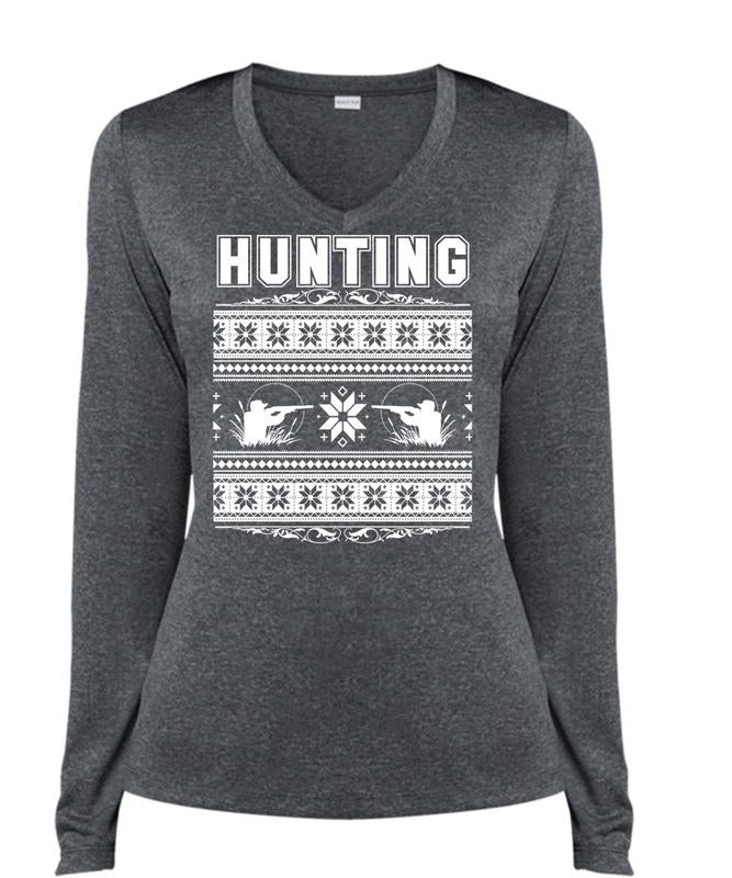 Being A Hunter T Shirt, My Favorite T Shirt, Cool Shirt (Ladies LS Heather V-Neck)