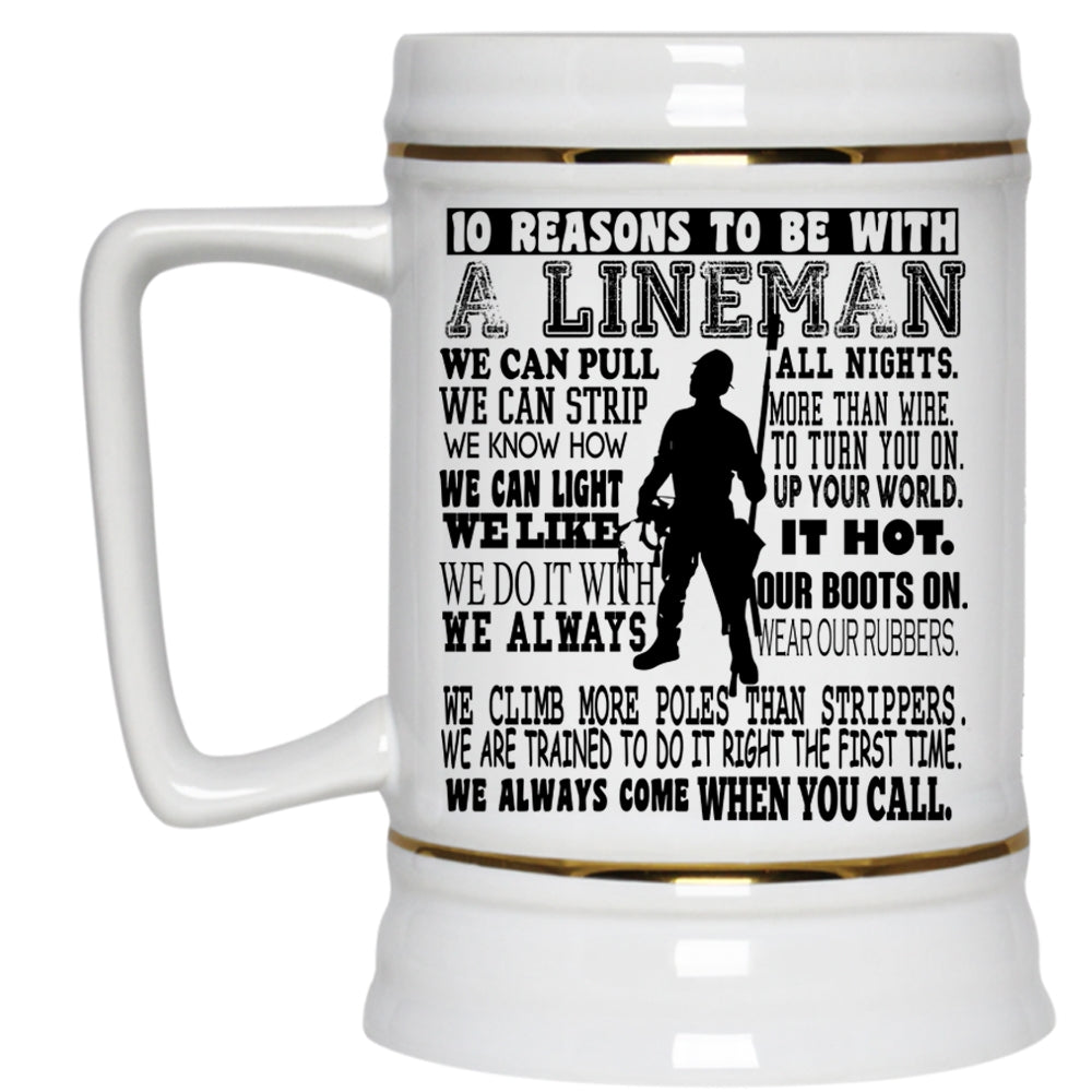 Being A Lineman Beer Stein 22oz, 10 Reasons To Be With A Lineman Beer Mug