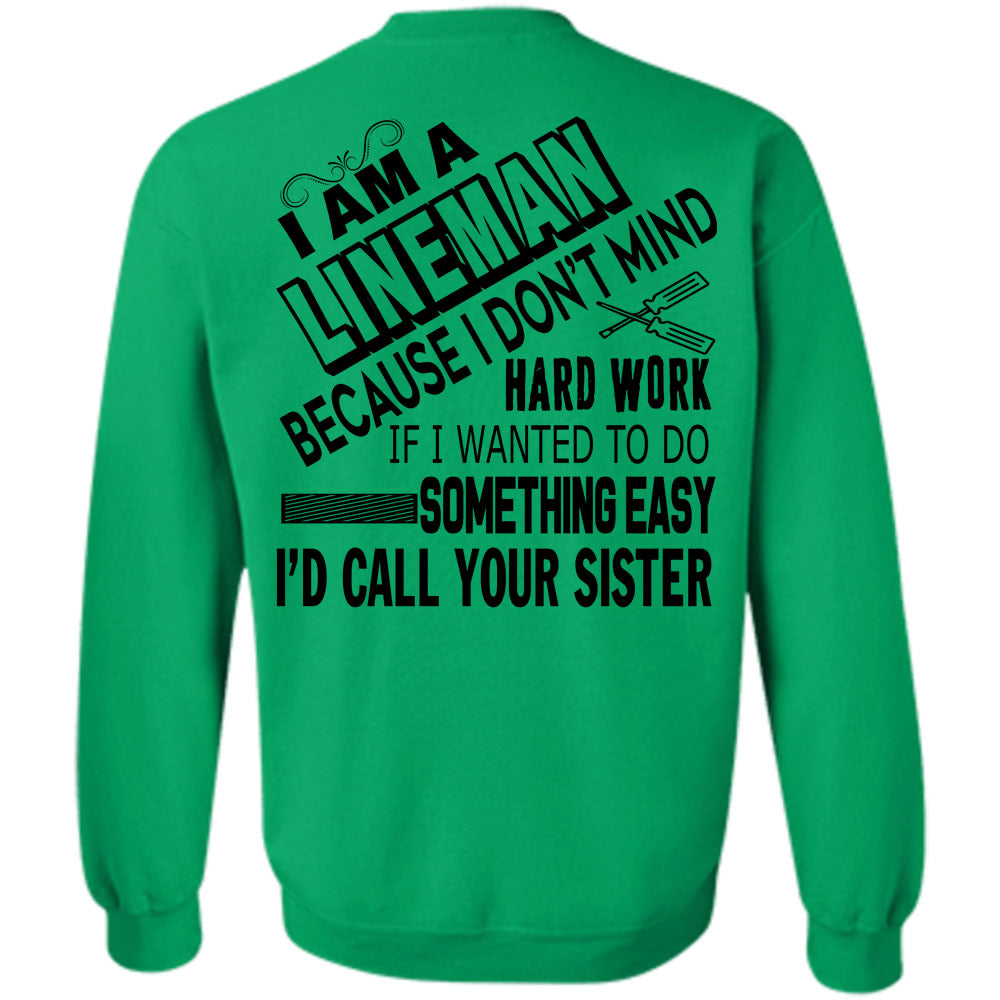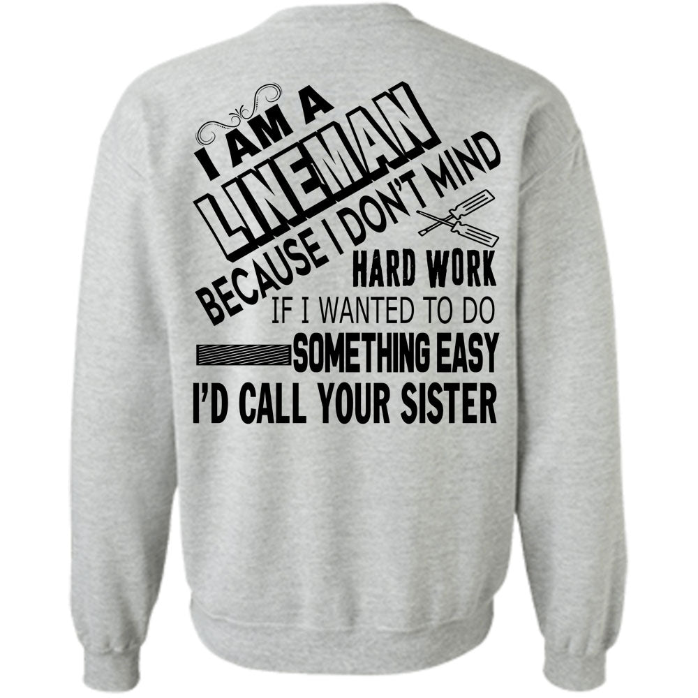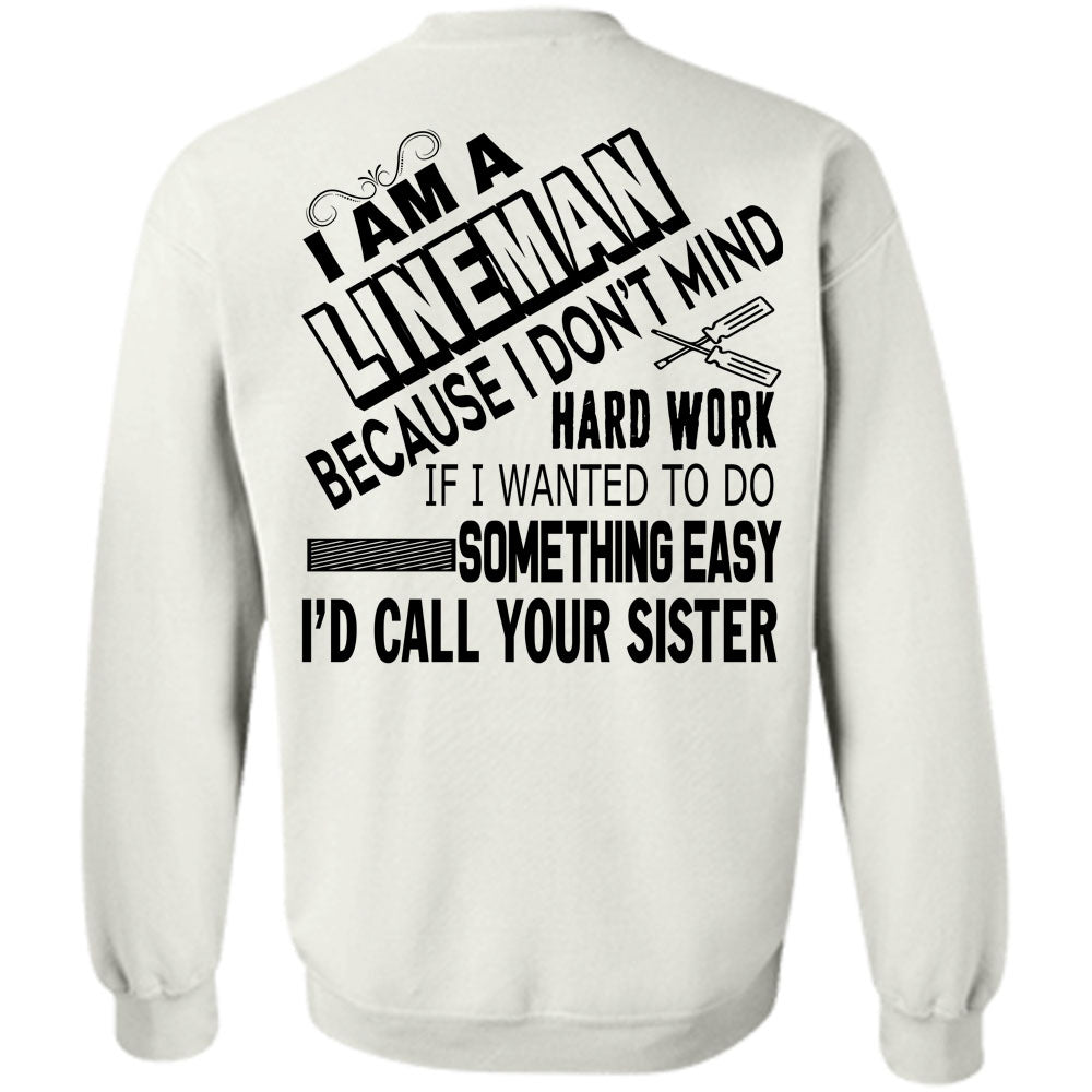 Being A Lineman T Shirt, I Am A Lineman Because I Don't Mind Hard Work Sweatshirt