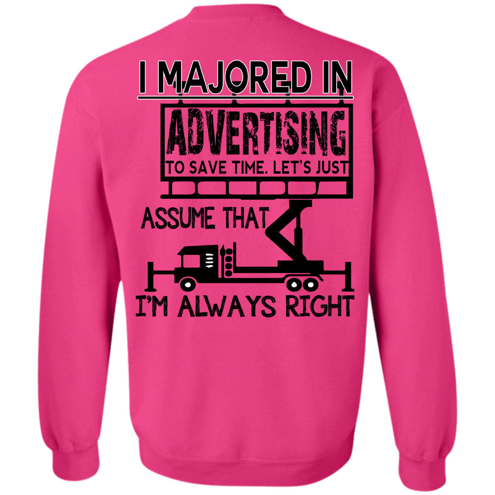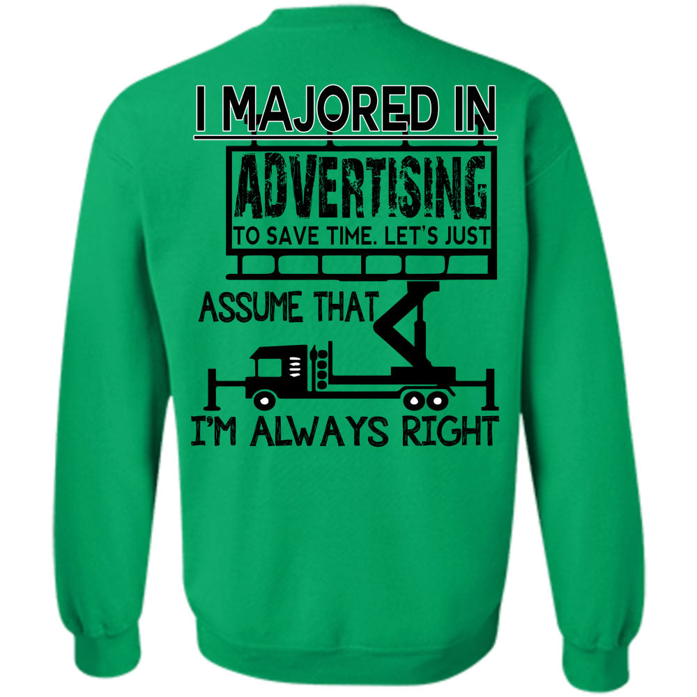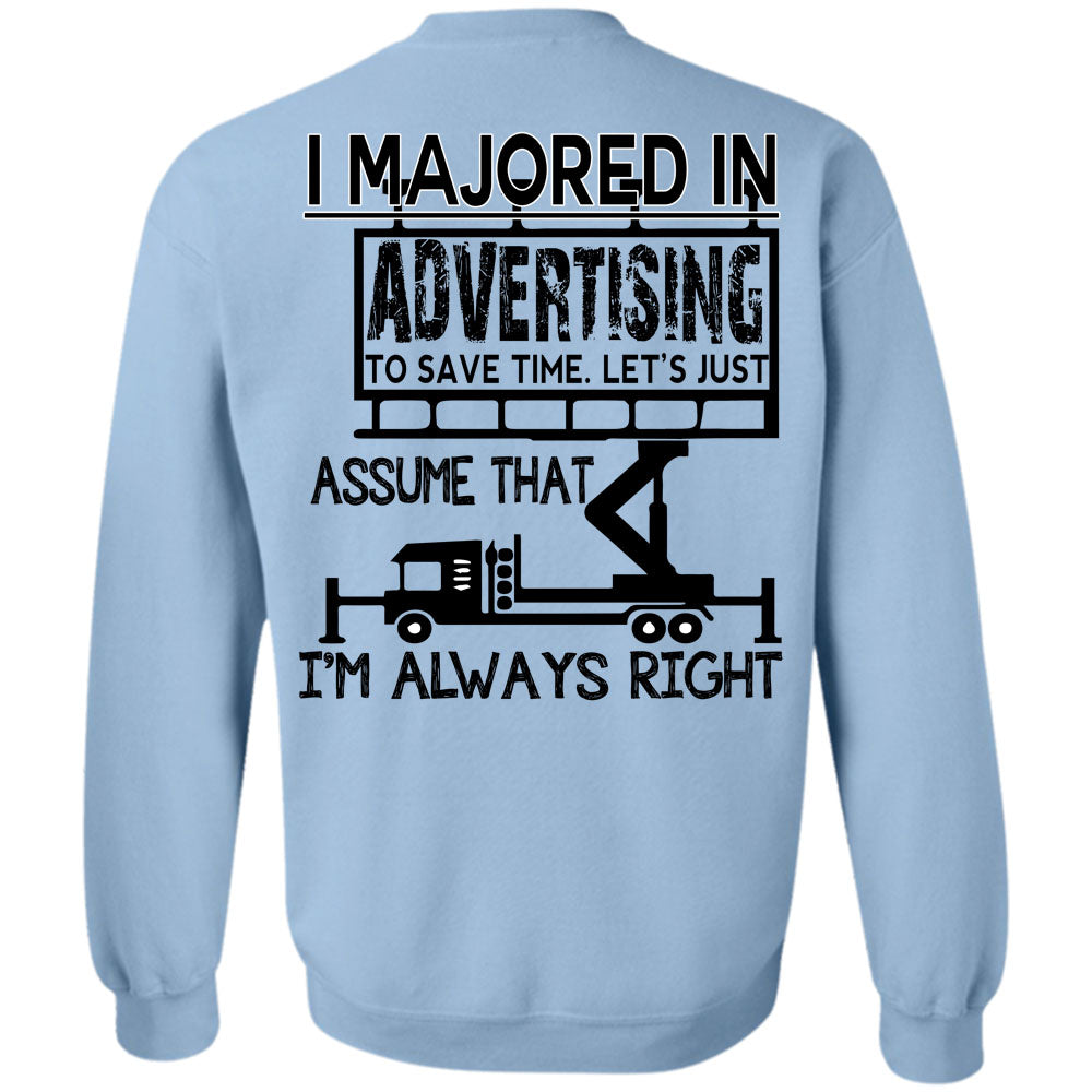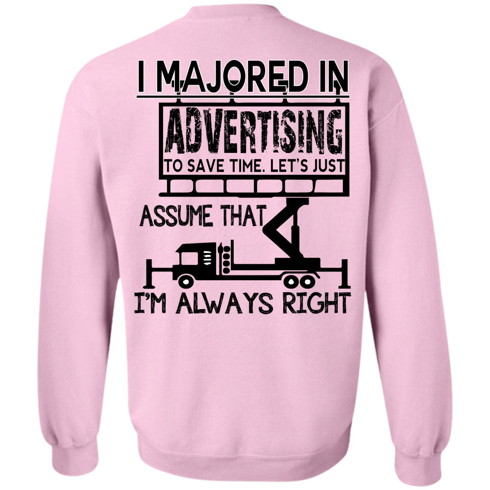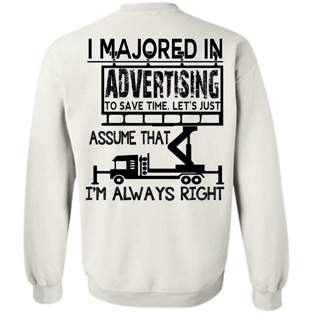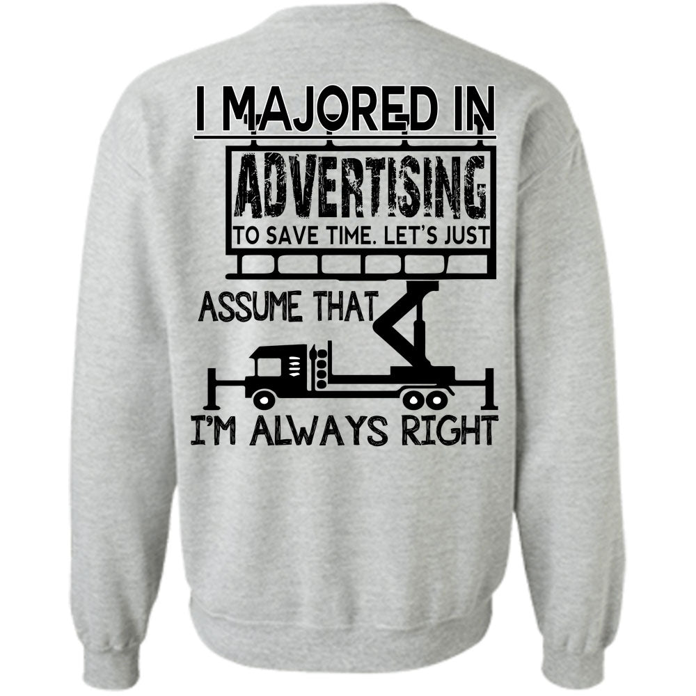 Being A Manager T Shirt, I Majored In Advertising To Save Time Sweatshirt