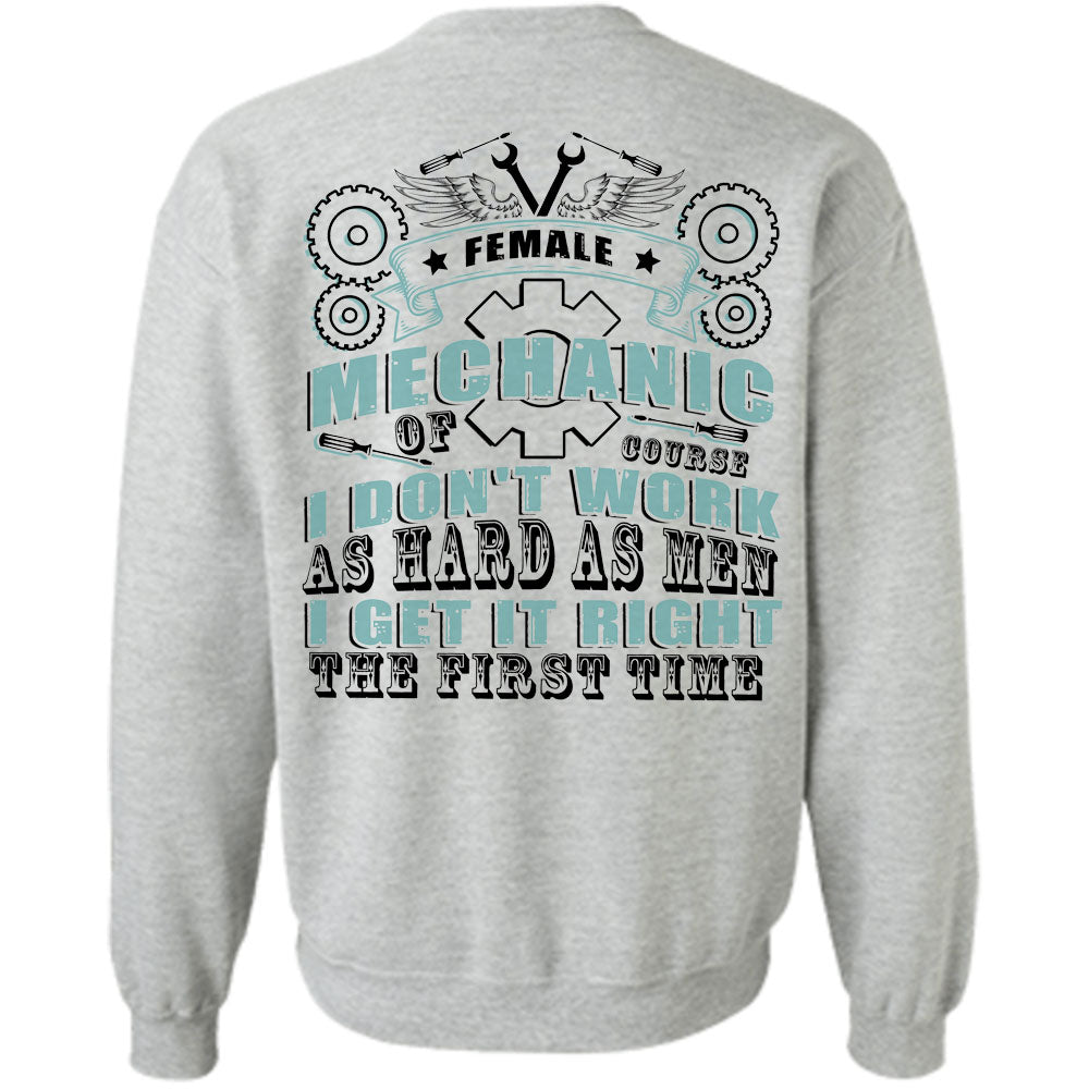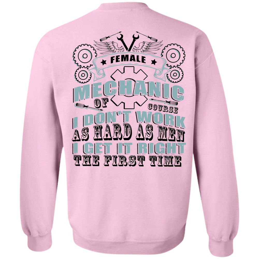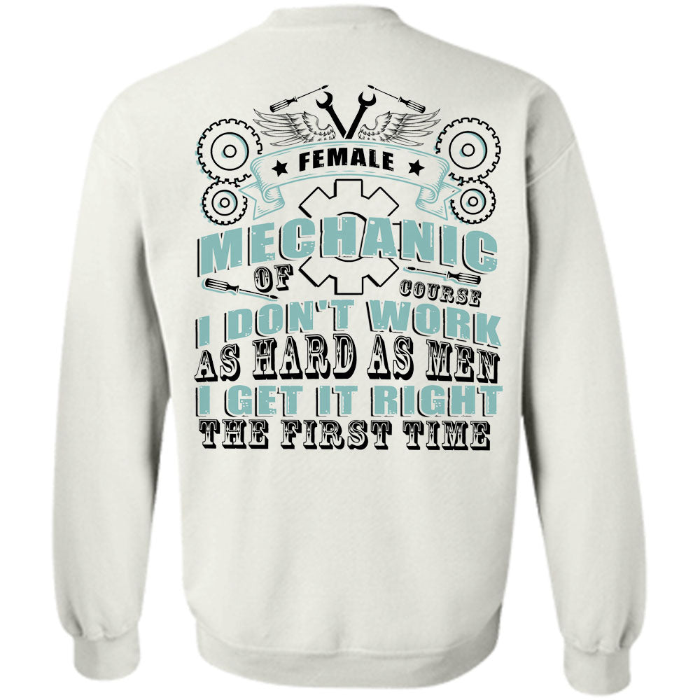 Being A Mechanic T Shirt, Female Mechanic Course I Don't Work As Hard As Men Sweatshirt