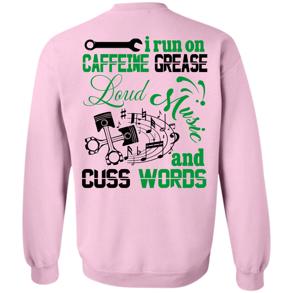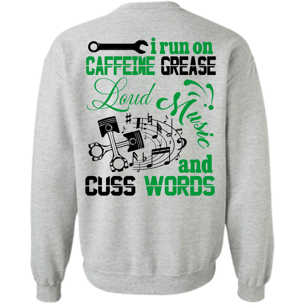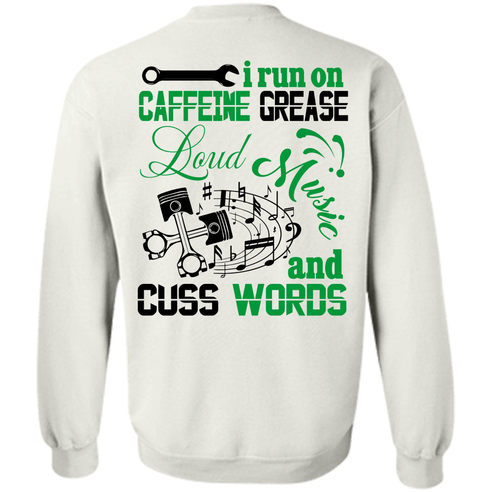 Being A Mechanic T Shirt, I Run On Caffeine Grease Loud Music And Cuss Words Sweatshirt