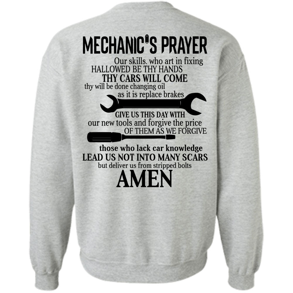 Being A Mechanic T Shirt, Mechanic's Prayer Art In Fixing Hallowed Be Thy Hands Sweatshirt