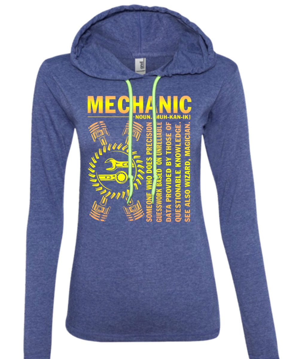 Being A Mechanic T Shirt, Who Does Precision Guesswork T Shirt (Anvil Ladies Ringspun Hooded)