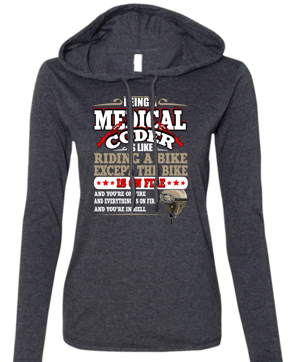 Being A Medical Coder T Shirt, Like Riding A Bike T Shirt (Anvil Ladies Ringspun Hooded)