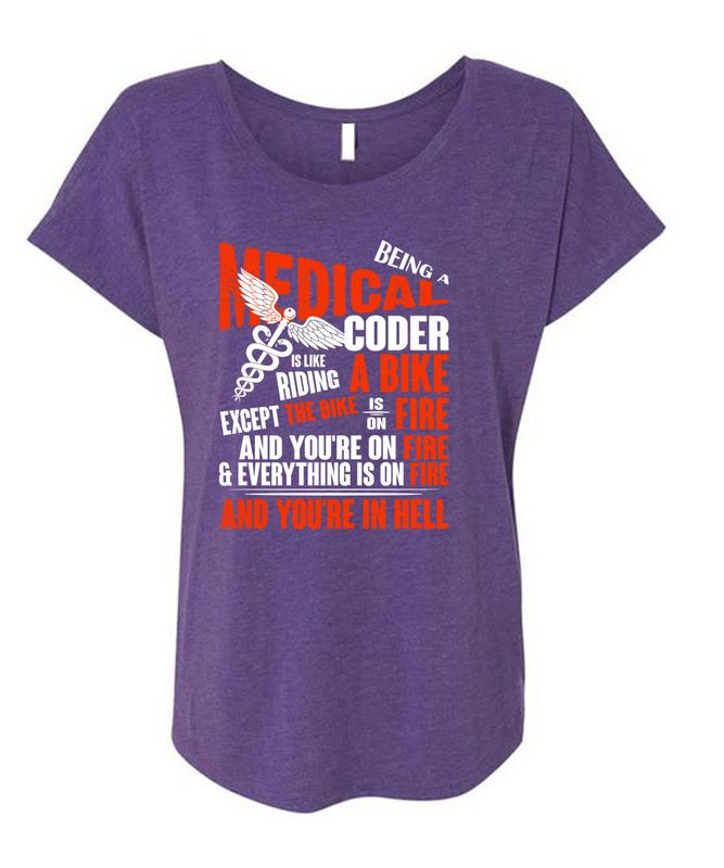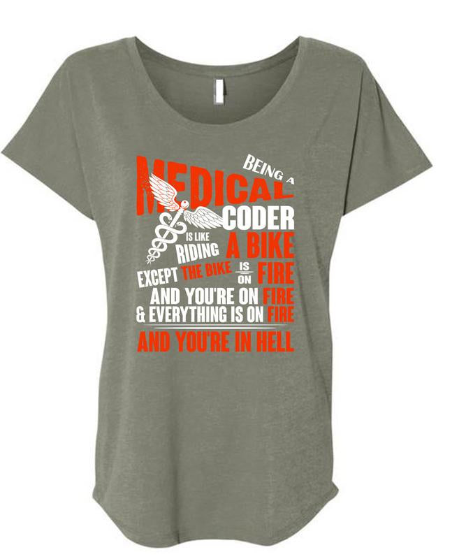 Being A Medical Coder T Shirt, Riding A Bike T Shirt, Cool Shirt (Ladies' Triblend Dolman Sleeve)