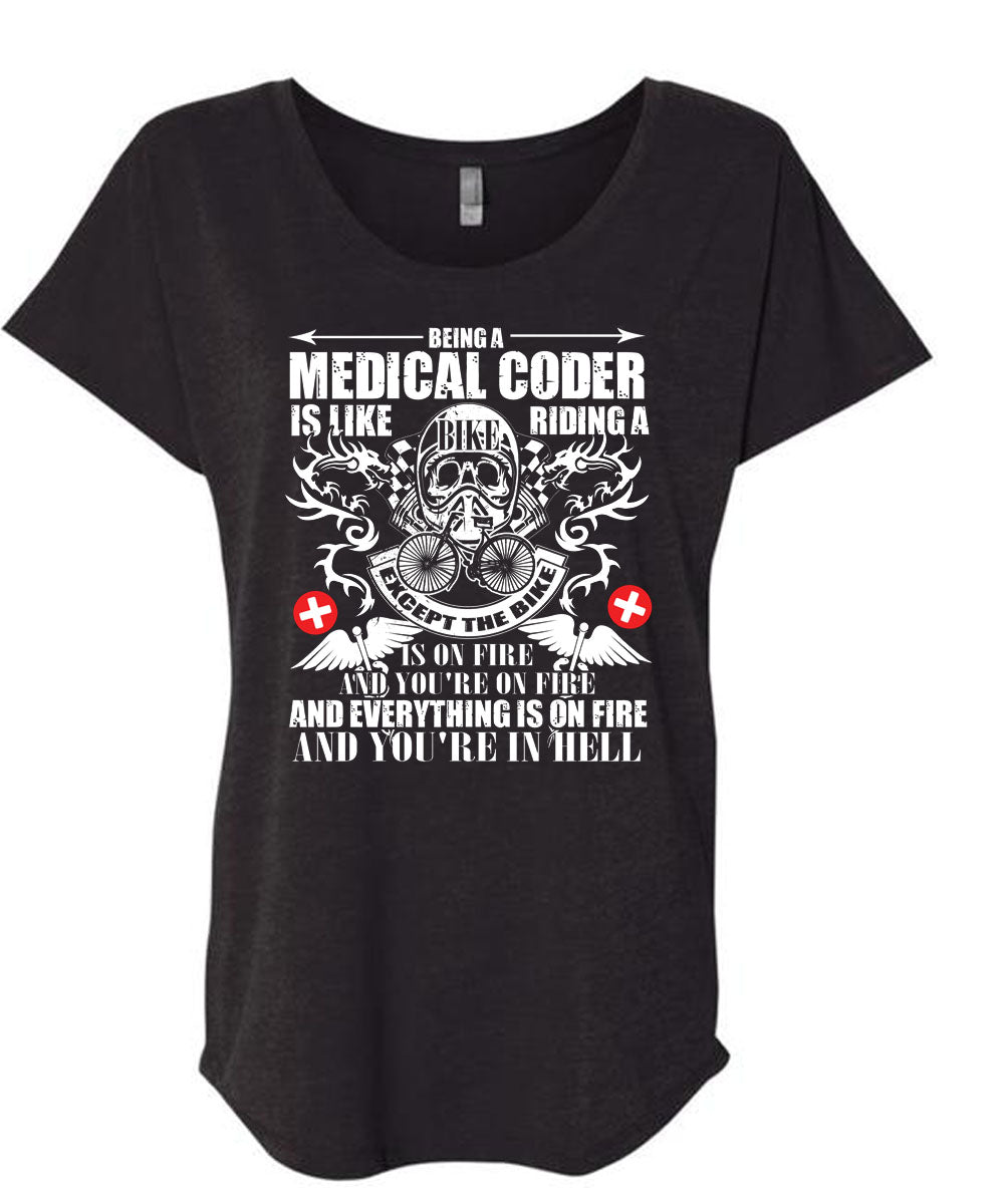 Being A Medical Coder T Shirt, You're In Hell T Shirt, Cool Shirt (Ladies' Triblend Dolman Sleeve)