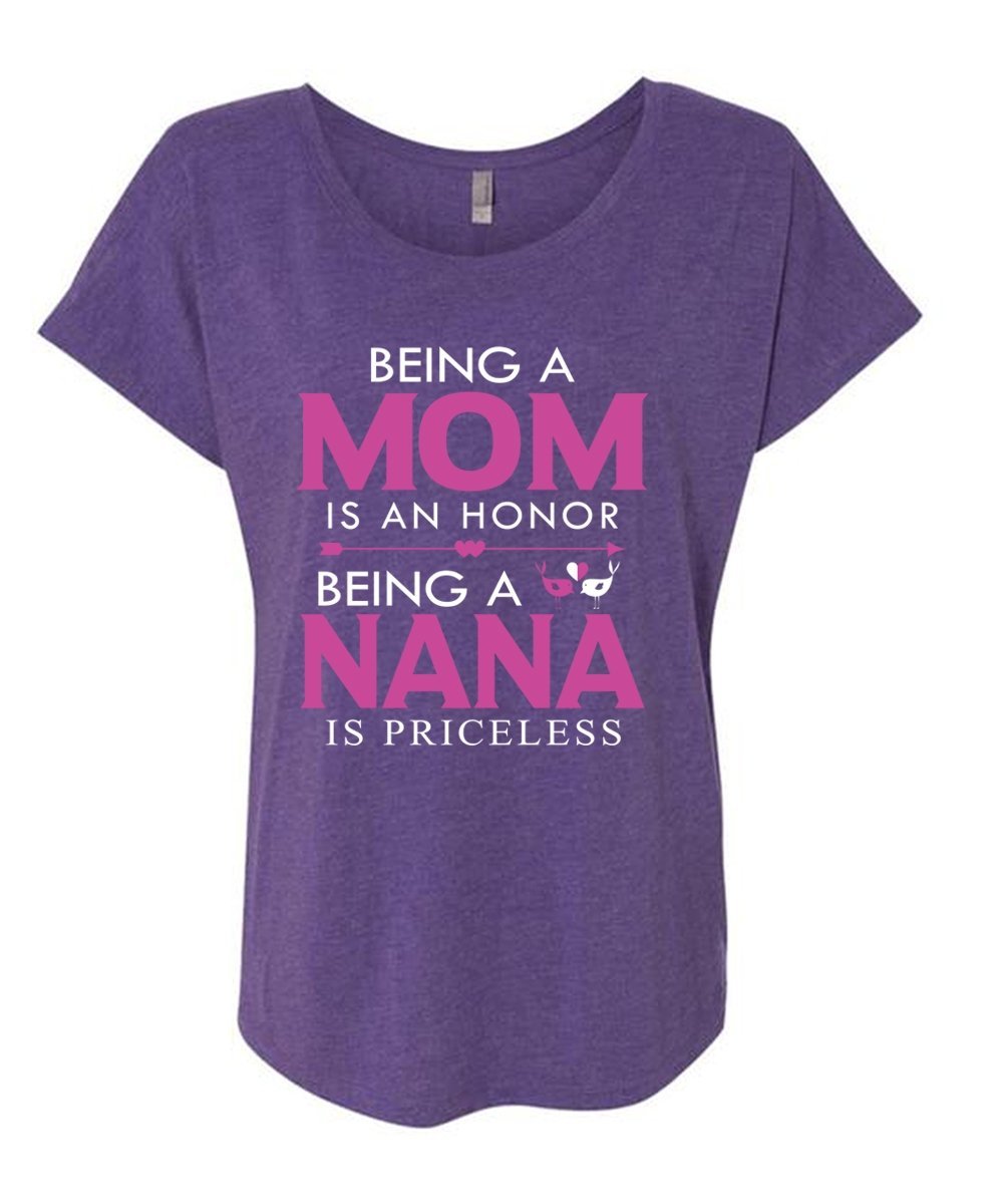 Being A Mom Is An Honor T Shirt, Being A Nana Is Priceless T Shirt (Ladies' Triblend Dolman Sleeve)