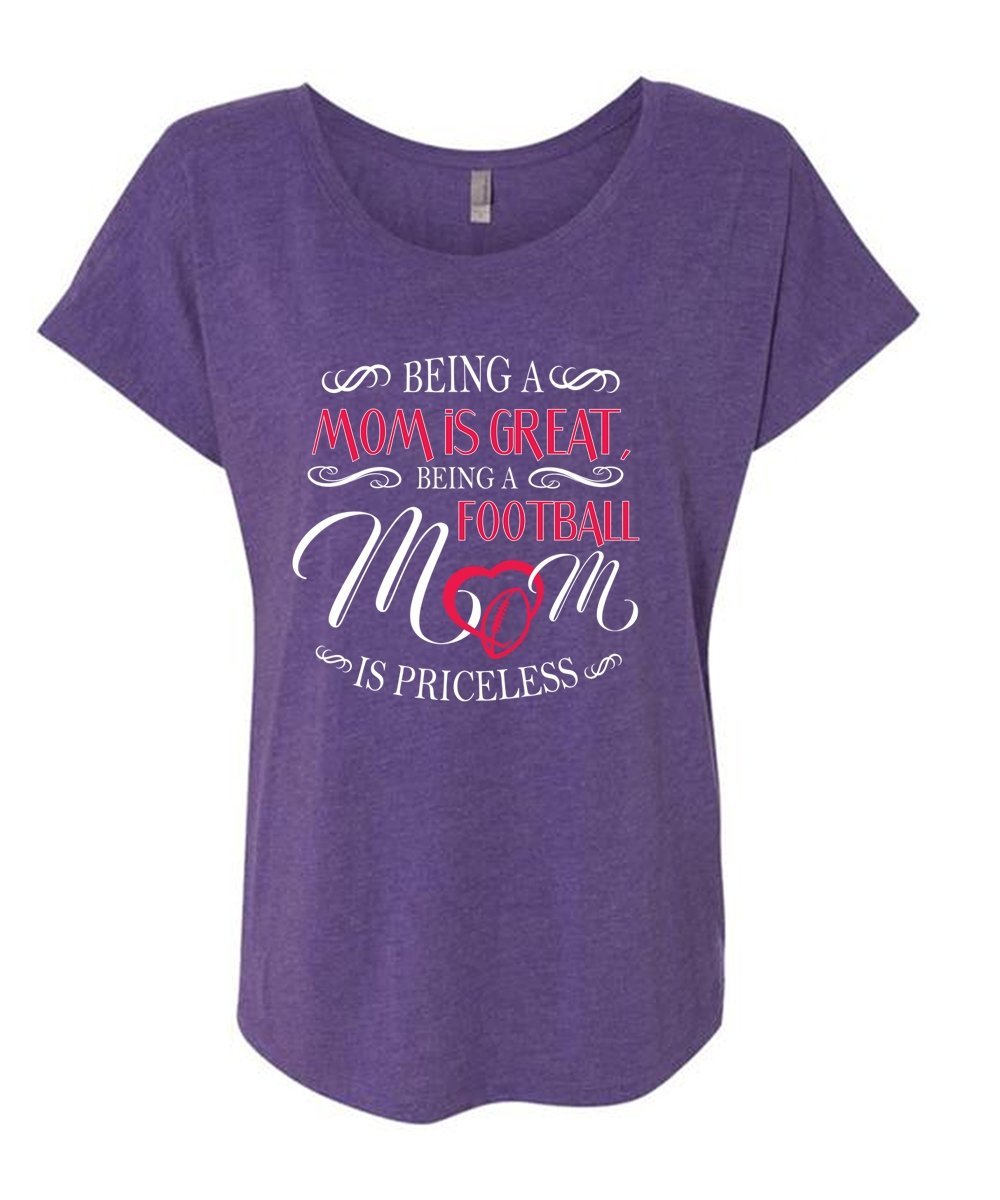 Being A Mom Is Great T Shirt, Being A Football Mom Is Priceless T Shirt, Sport T Shirt (Ladies' Triblend Dolman Sleeve)