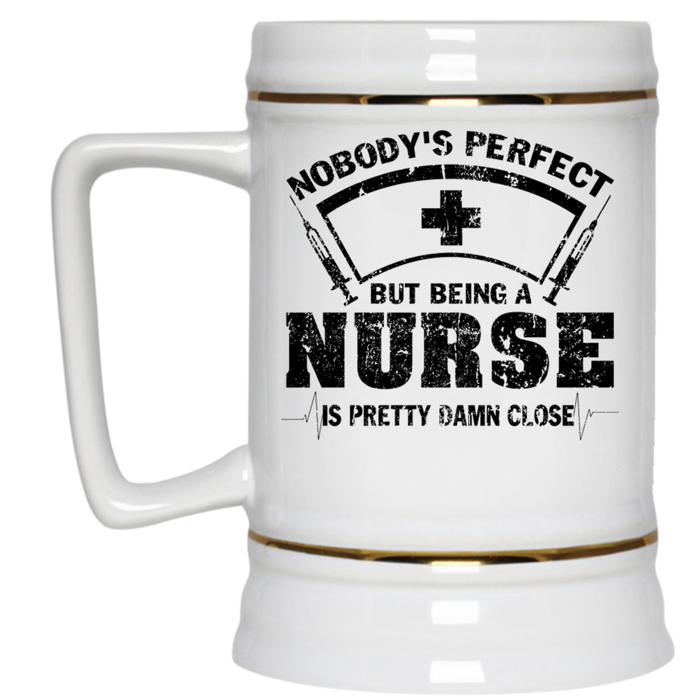 Being A Nurse Is Pretty Damn Close Beer Stein 22oz, Nobody's Perfect Beer Mug