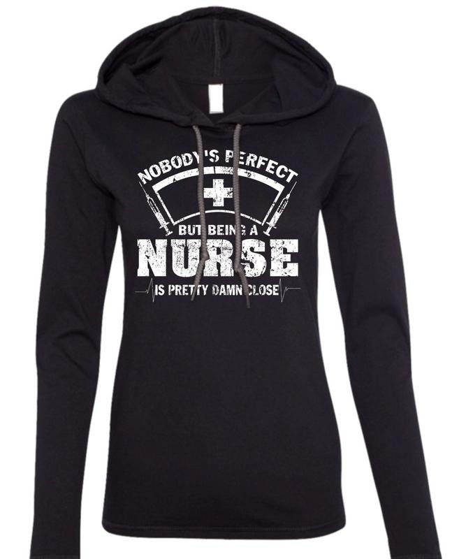 Being A Nurse Is Pretty Damn Close T Shirt, I Love Nursing T Shirt (Anvil Ladies Ringspun Hooded)