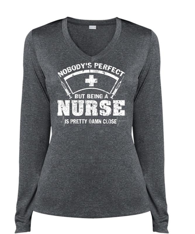 Being A Nurse Is Pretty Damn Close T Shirt, I Love Nursing T Shirt, Cool Shirt (Ladies LS Heather V-Neck)