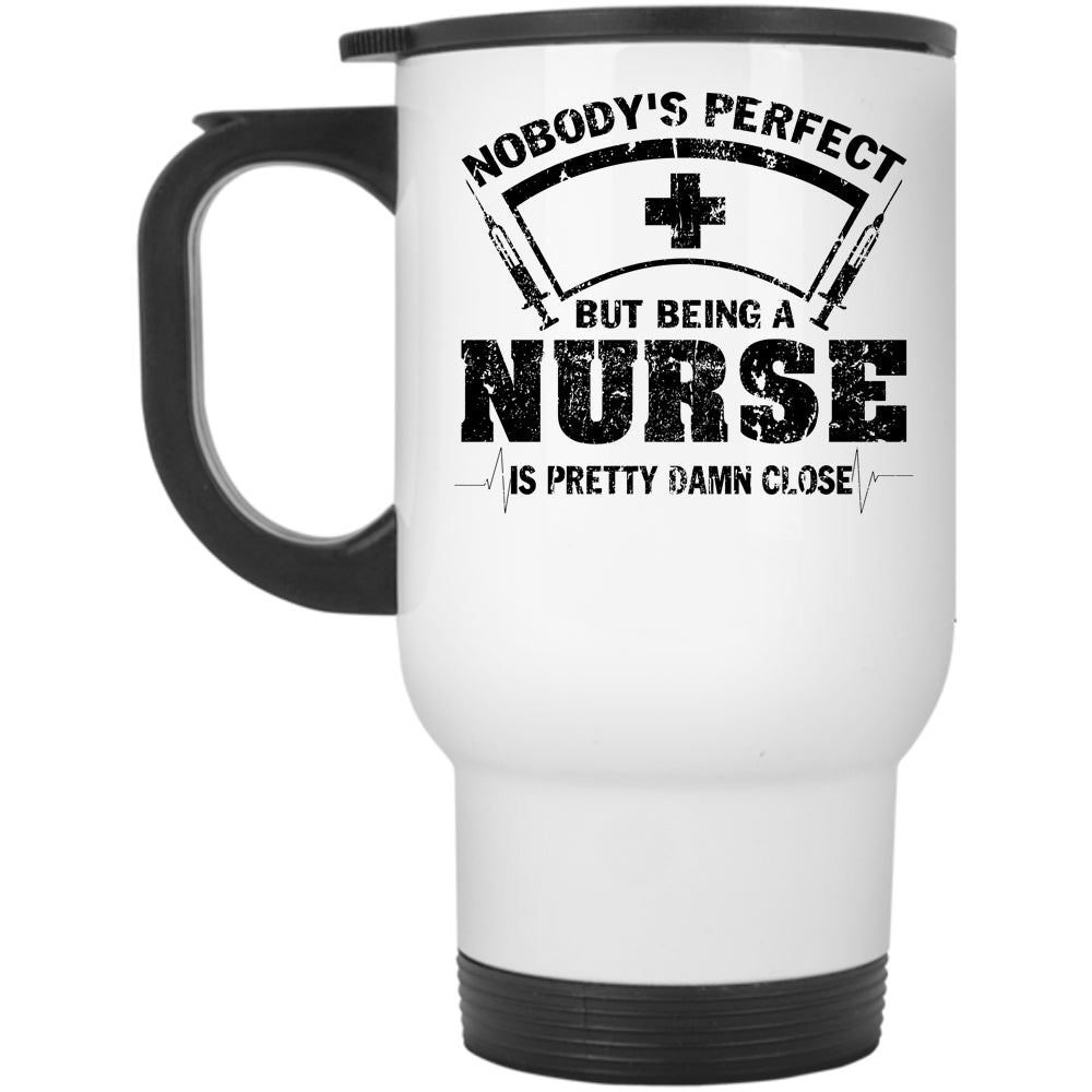 Being A Nurse Is Pretty Damn Close Travel Mug, Nobody's Perfect Mug
