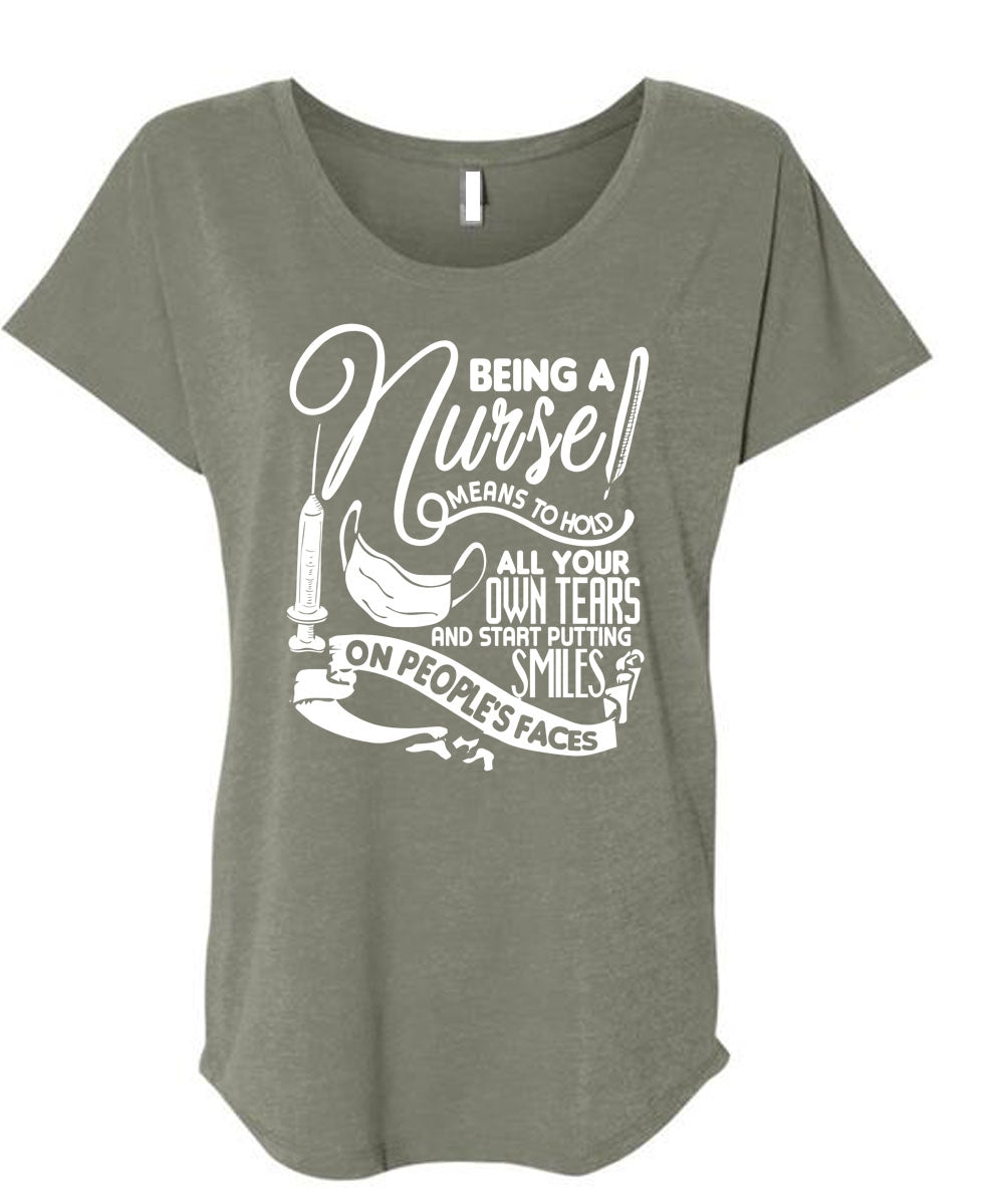 Being A Nurse Means To Hold T Shirt, Being A Nurse T Shirt, Cool Shirt (Ladies' Triblend Dolman Sleeve)