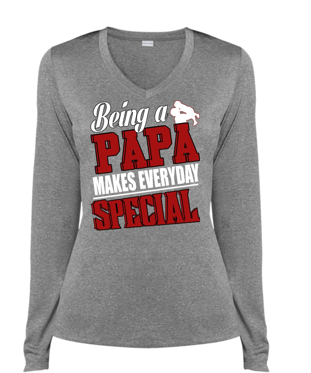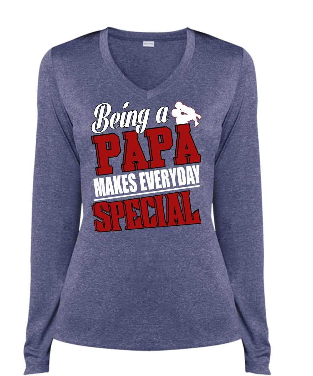 Being A Papa Makes Everyday Special T Shirt, Being A Papa T Shirt, Cool Shirt (Ladies LS Heather V-Neck)