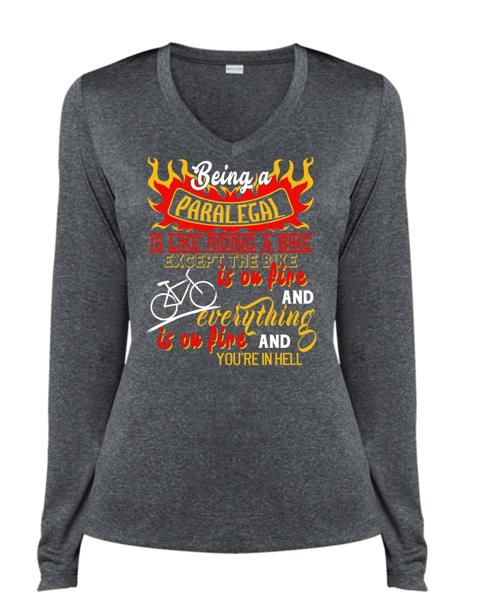Being A Paralegal Is Like Riding A Bike T Shirt, Job T Shirt (Ladies LS Heather V-Neck)
