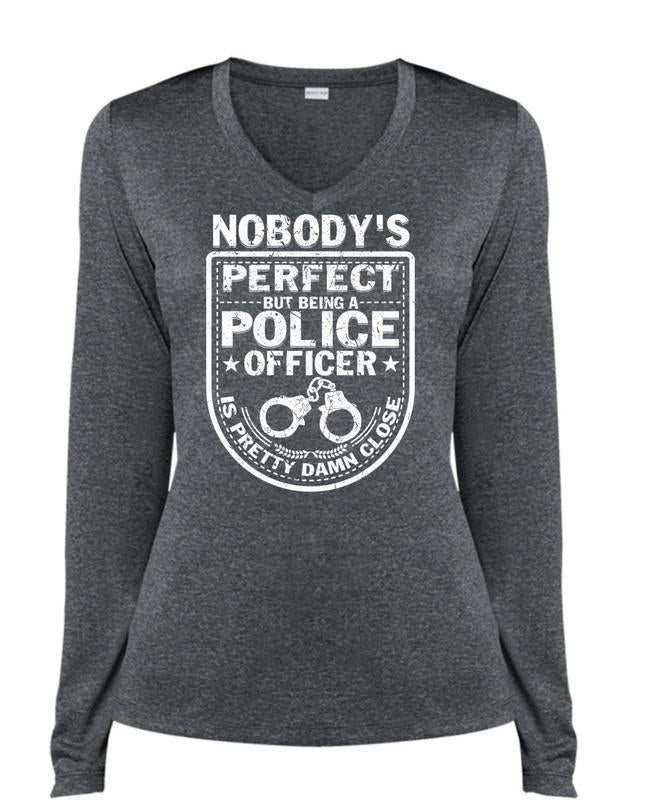 Being A Police Officer Is Pretty Damn Close T Shirt, I Love Police T Shirt, Cool Shirt (Ladies LS Heather V-Neck)