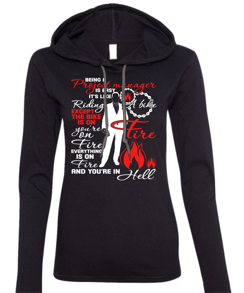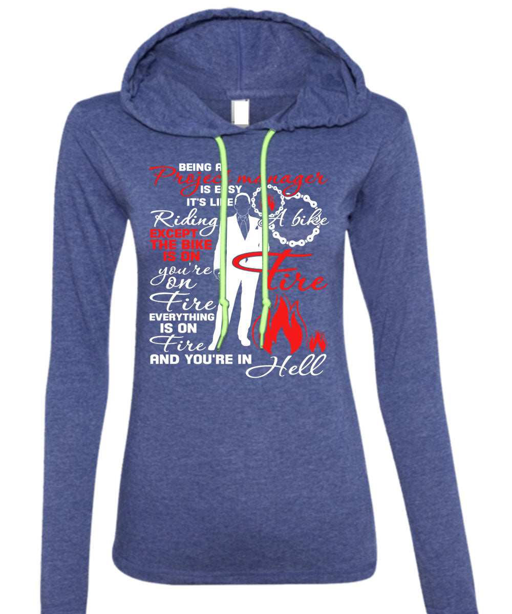 Being A Project Manager Is Easy T Shirt, It's Like Riding A Bike T Shirt (Anvil Ladies Ringspun Hooded)