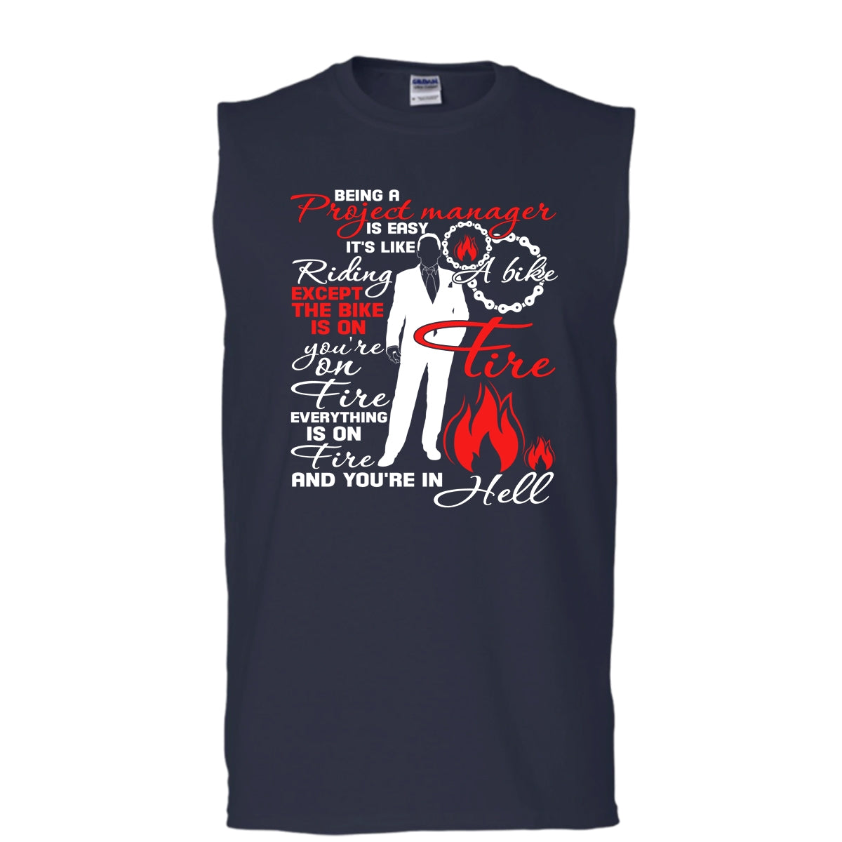 Being A Project Manager T Shirt, It's Easy It's Like Riding A Bike T Shirt, Cool T Shirt (Men's Cotton Sleeveless)