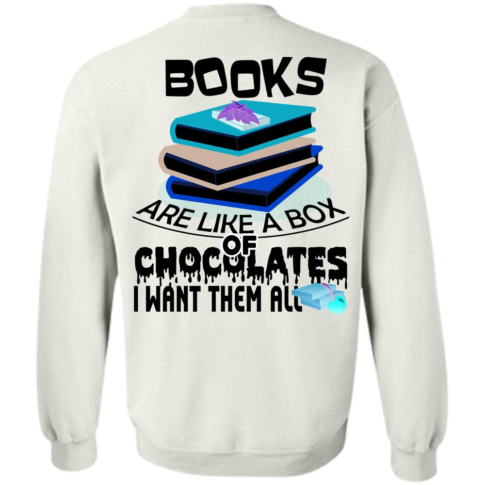 Being A Reader T Shirt, Books Are Like A Box Of Chocolates Sweatshirt