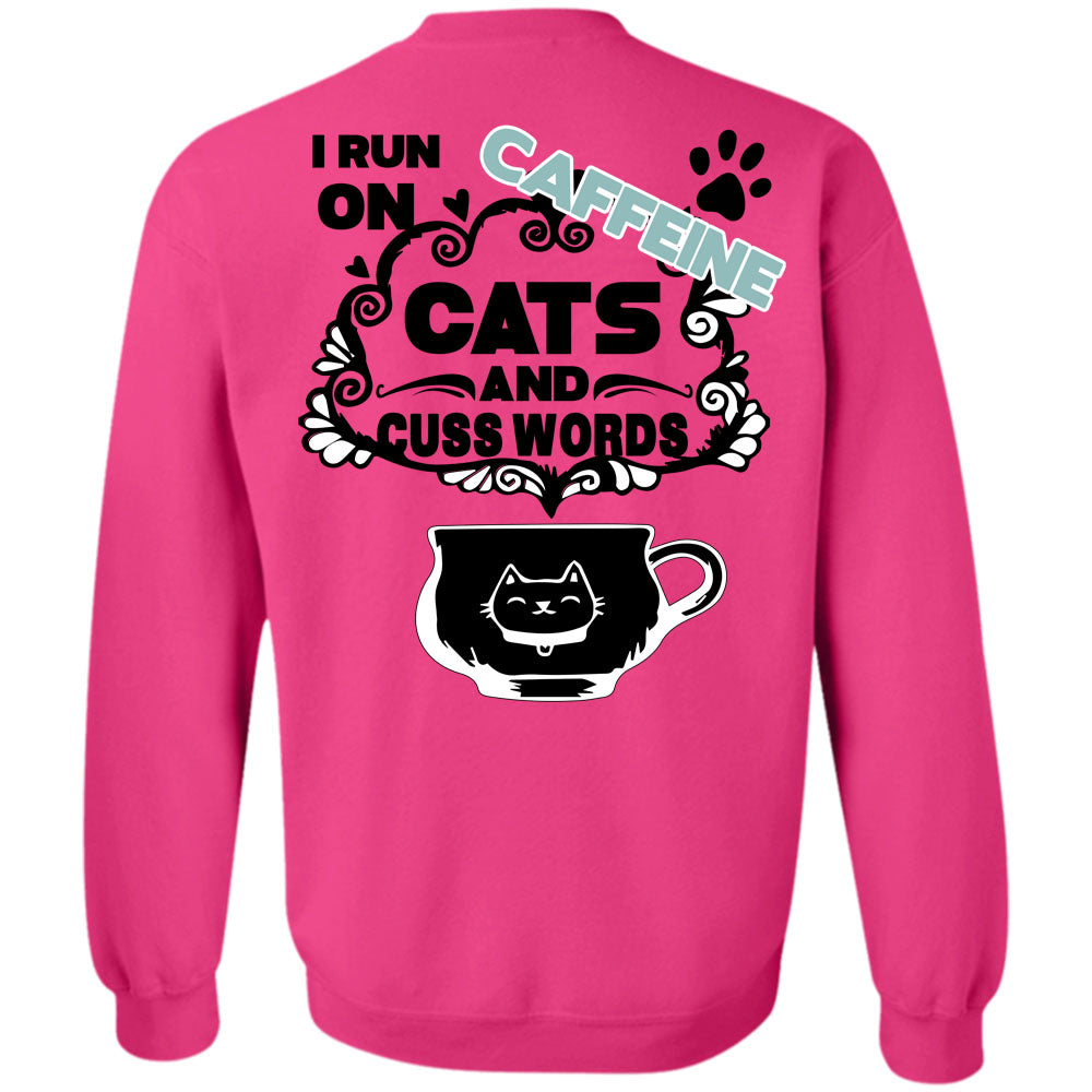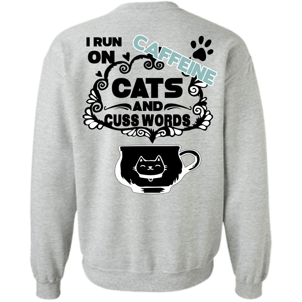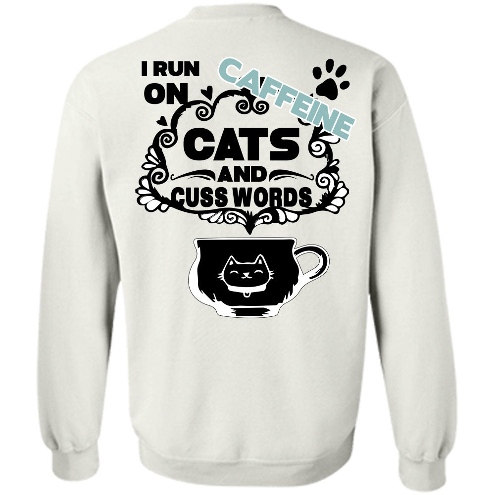 Being A Runner T Shirt, I Run On Caffeine Cats And Cuss Words Sweatshirt