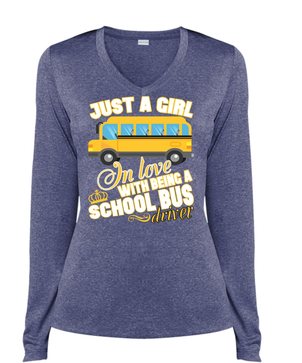 Being A School Bus Driver T Shirt, Just A Girl In Love T Shirt, Cool Shirt (Ladies LS Heather V-Neck)