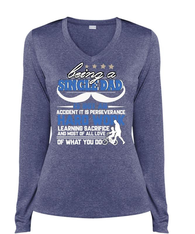 Being A Single Dad T Shirt, It Is Perseverance Hard Work T Shirt, Cool Shirt (Ladies LS Heather V-Neck)