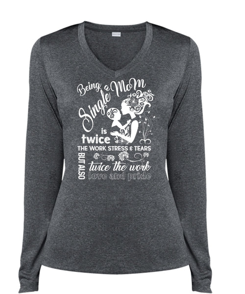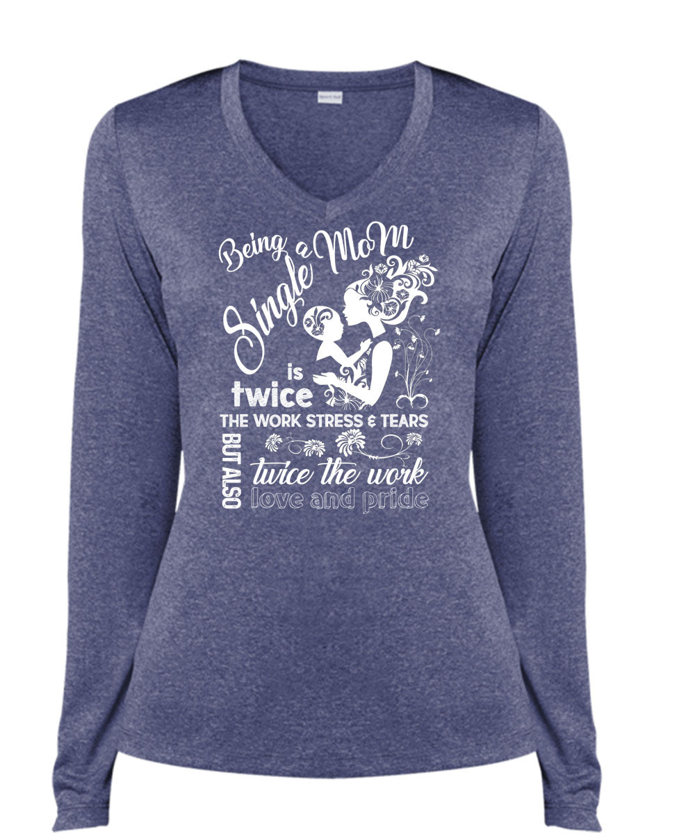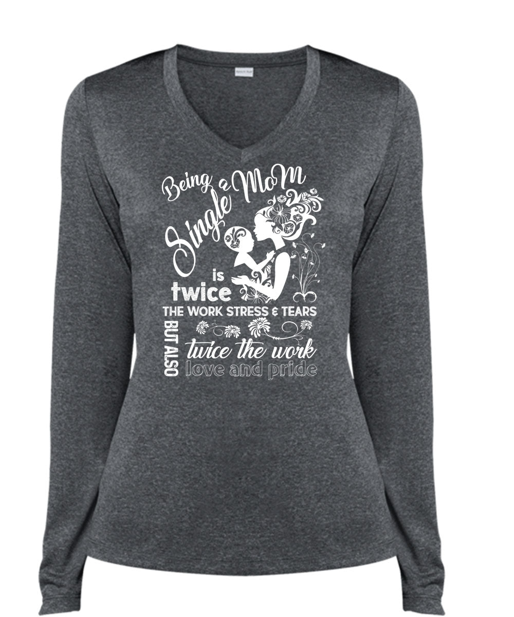 Being A Single Mom T Shirt, Twice The Work Love And Pride T Shirt, Cool Shirt (Ladies LS Heather V-Neck)