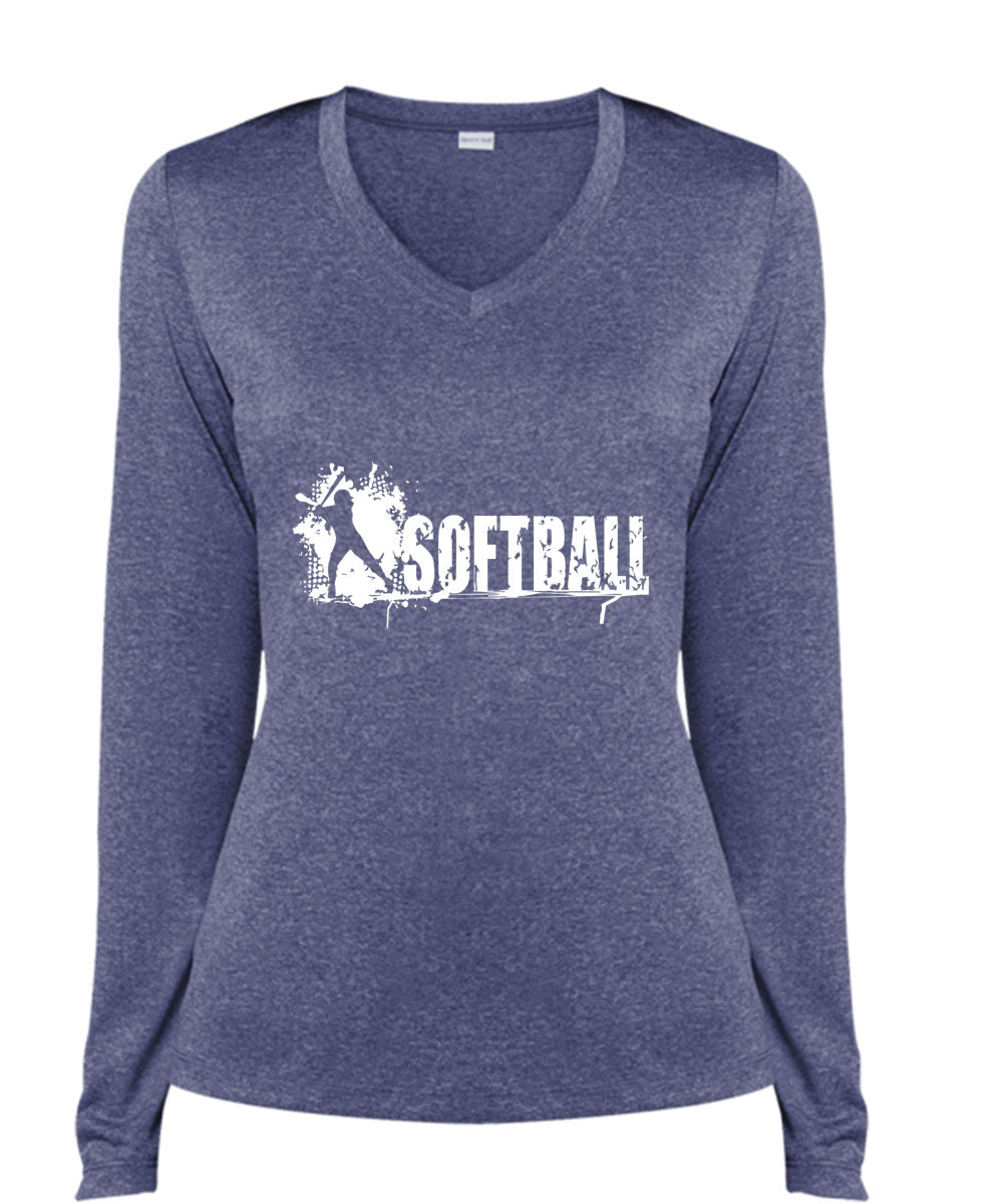 Being A Softball Coach T Shirt, My Favorite T Shirt, Cool Shirt (Ladies LS Heather V-Neck)
