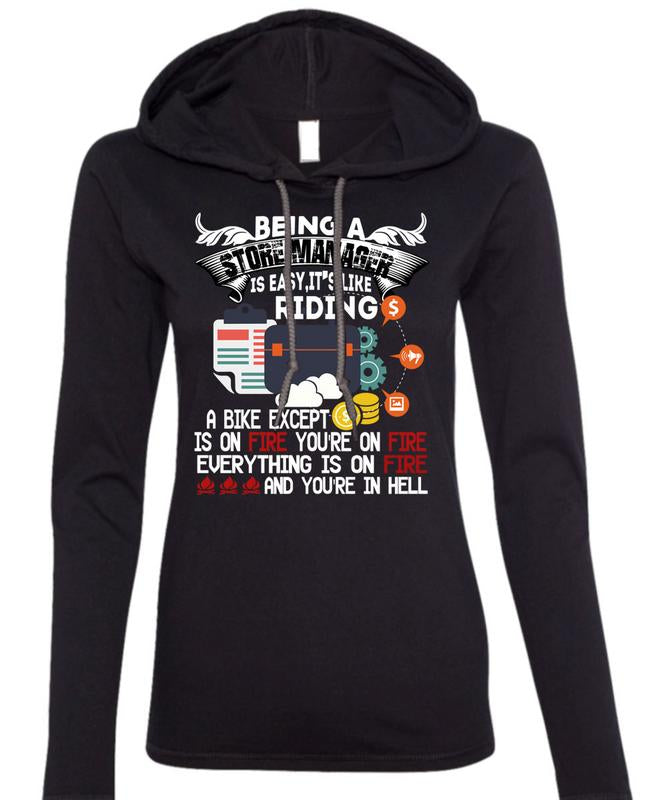 Being A Store Manager T Shirt, It's Like Riding A Bike T Shirt (Anvil Ladies Ringspun Hooded)