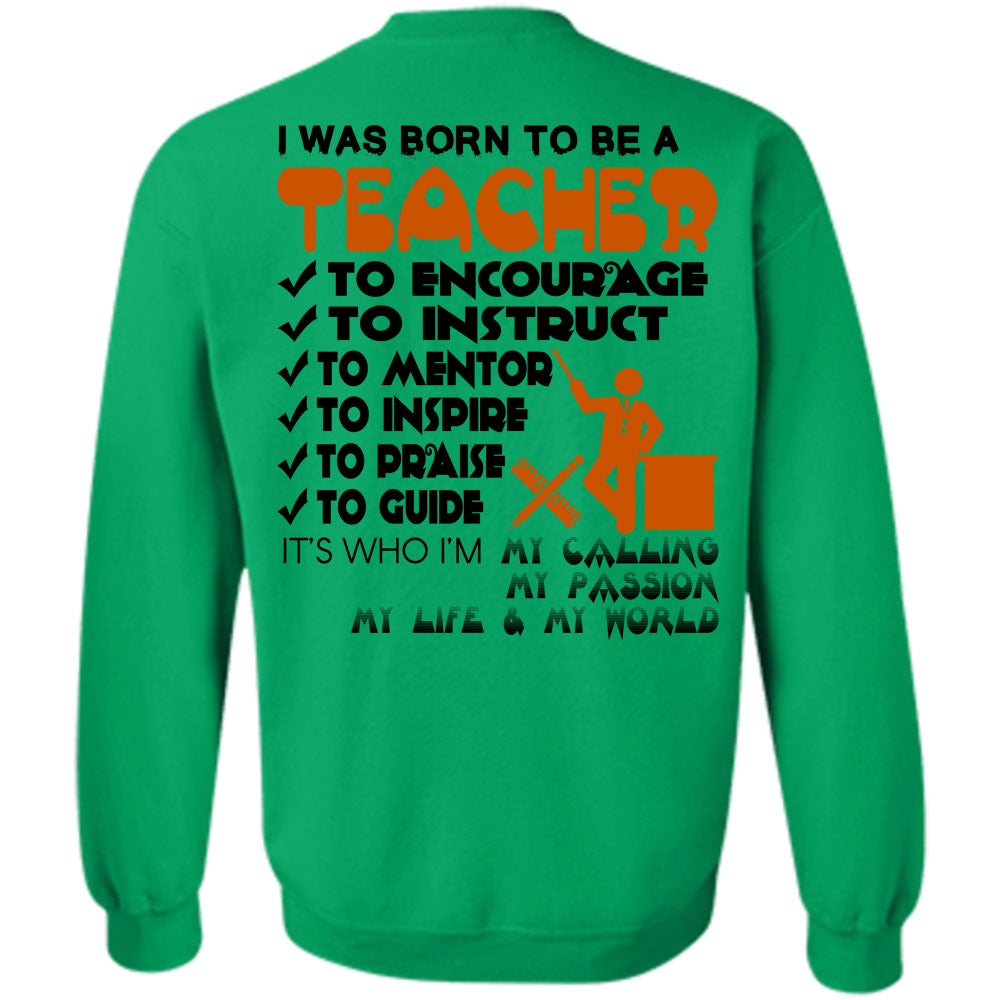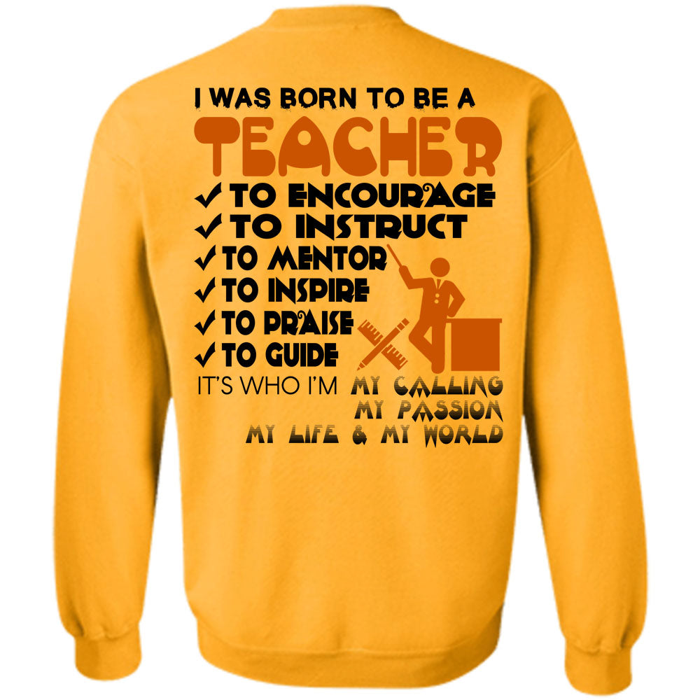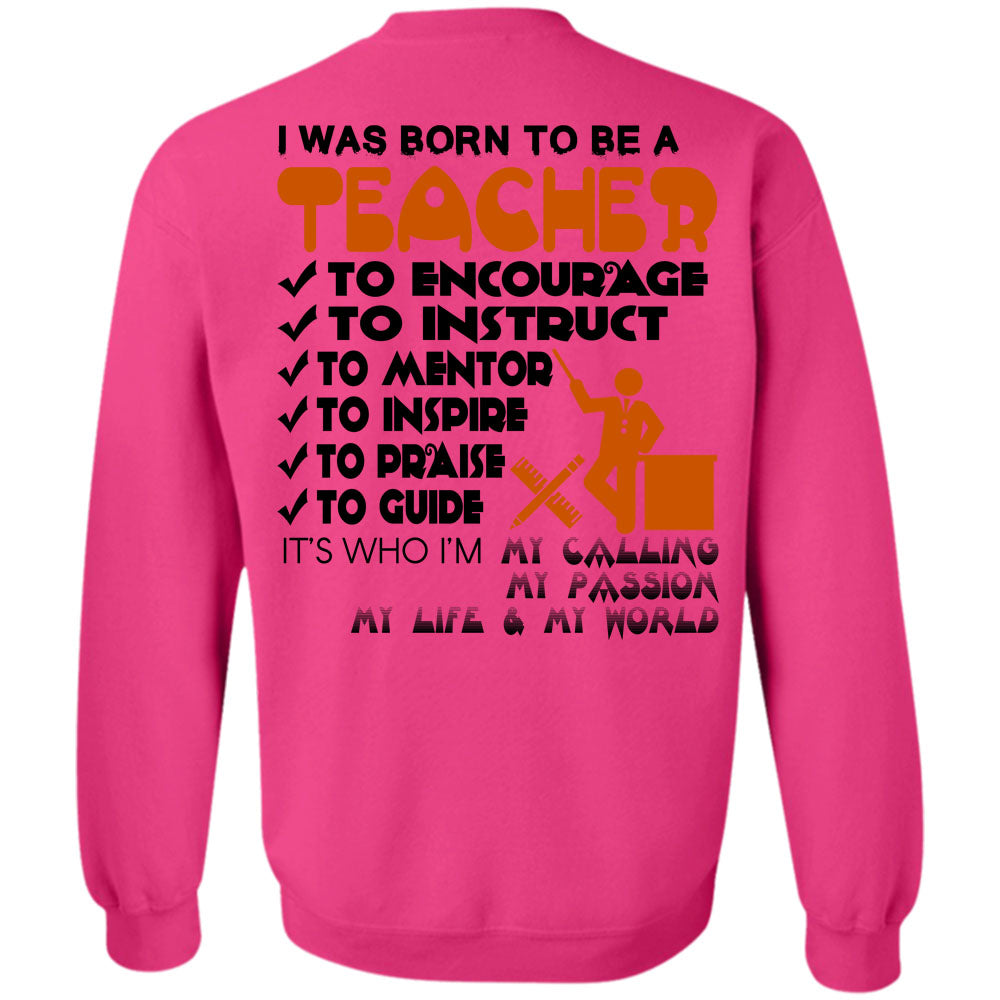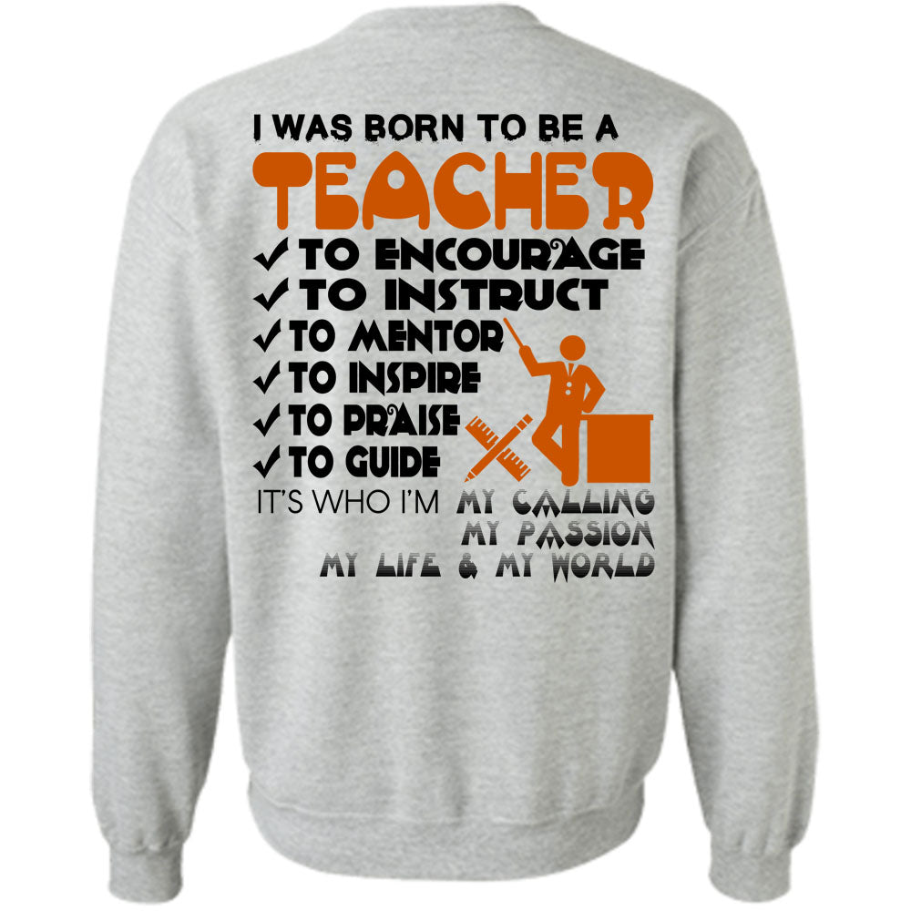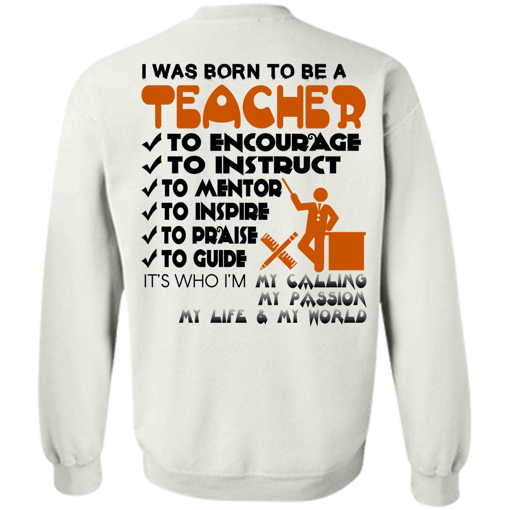 Being A Teacher T Shirt, I Was Born To Be A Teacher To Instruct Sweatshirt